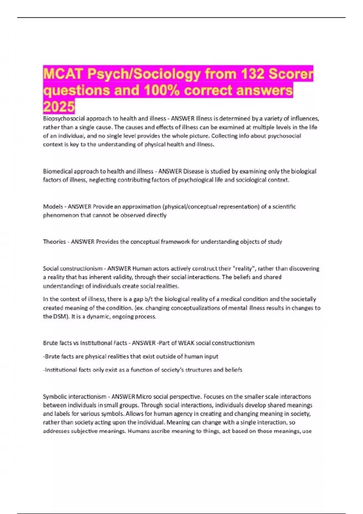 MCAT Psych/Sociology from 132 Scorer questions and 100% correct answers 2025