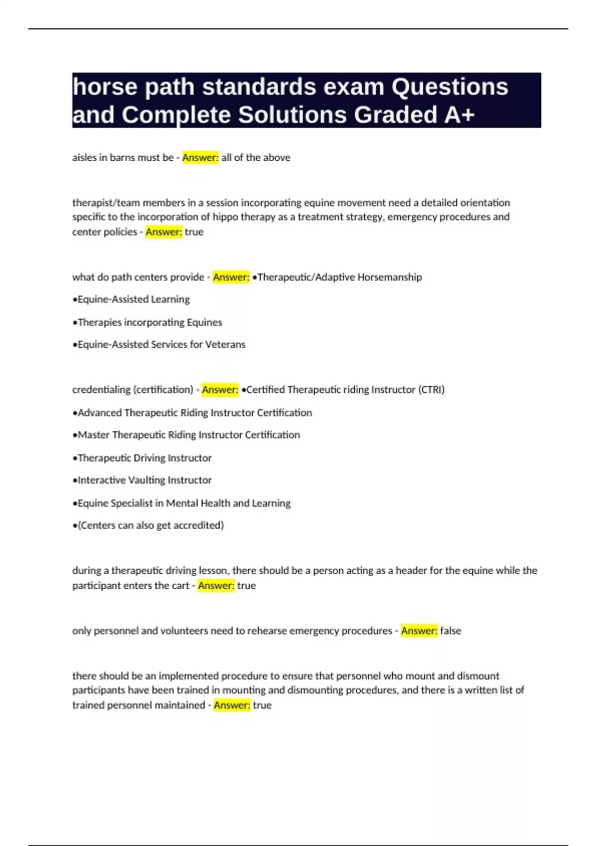 what do path centers provide - Answer: •Therapeutic/Adaptive Horsemanship