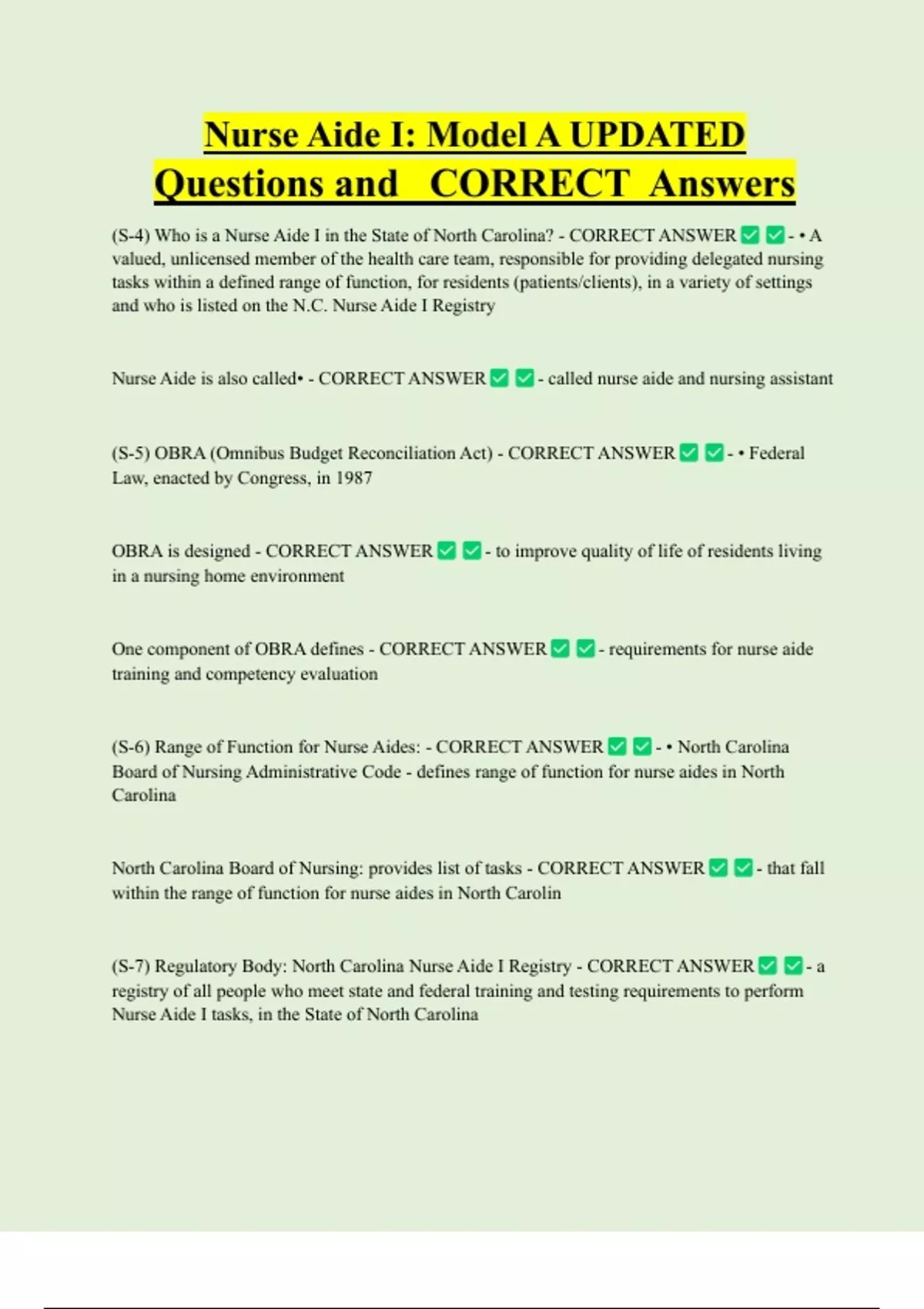 (S‐4) Who is a Nurse Aide I in the State of North Carolina? - CORRECT ANSWER -•A