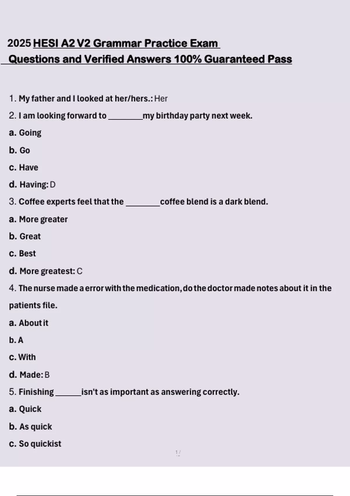 2025 HESI A2 V2 Grammar Practice Exam Questions and Verified Answers 100% Guaranteed Pass