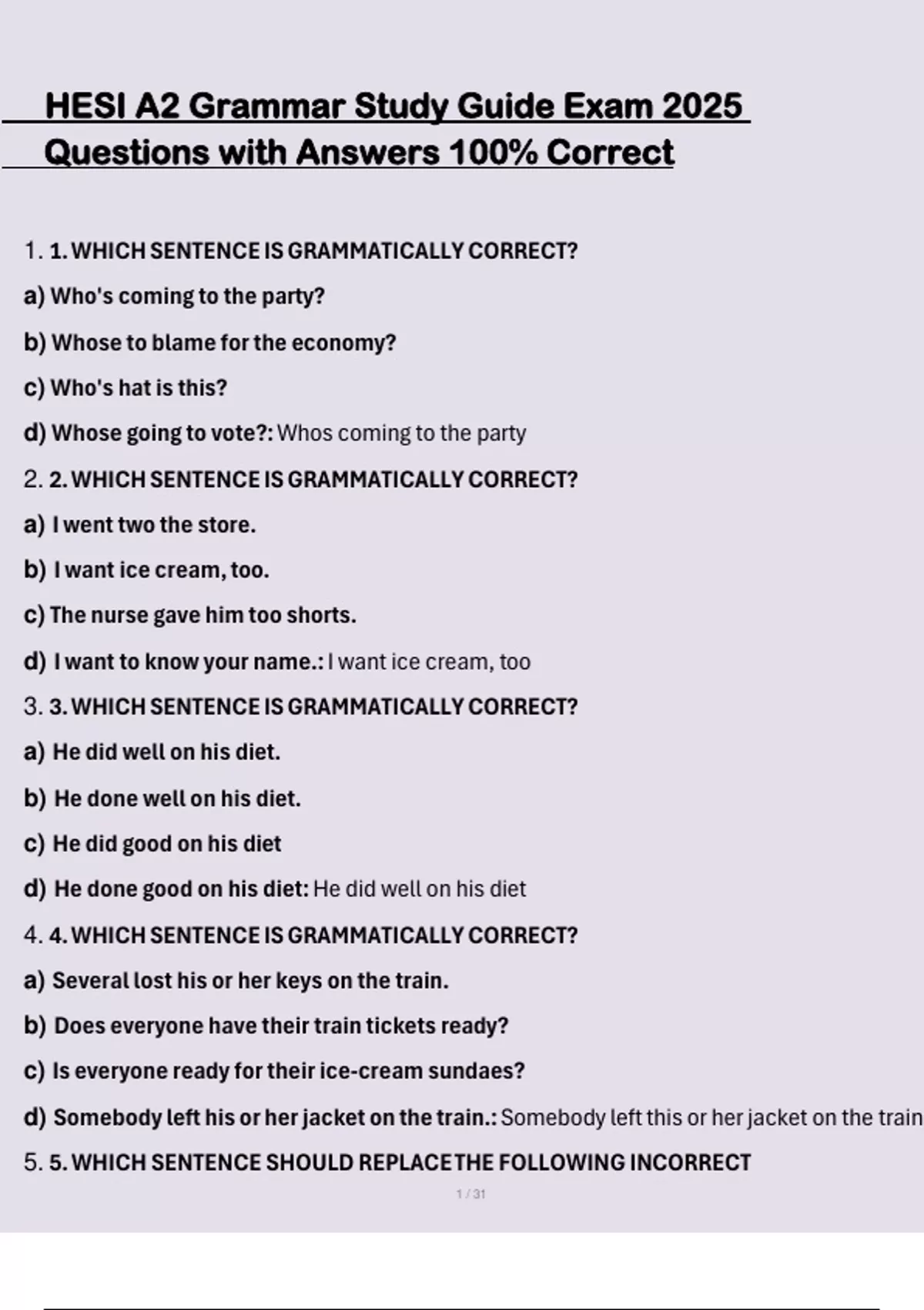 1. 1. WHICH SENTENCE IS GRAMMATICALLY CORRECT?