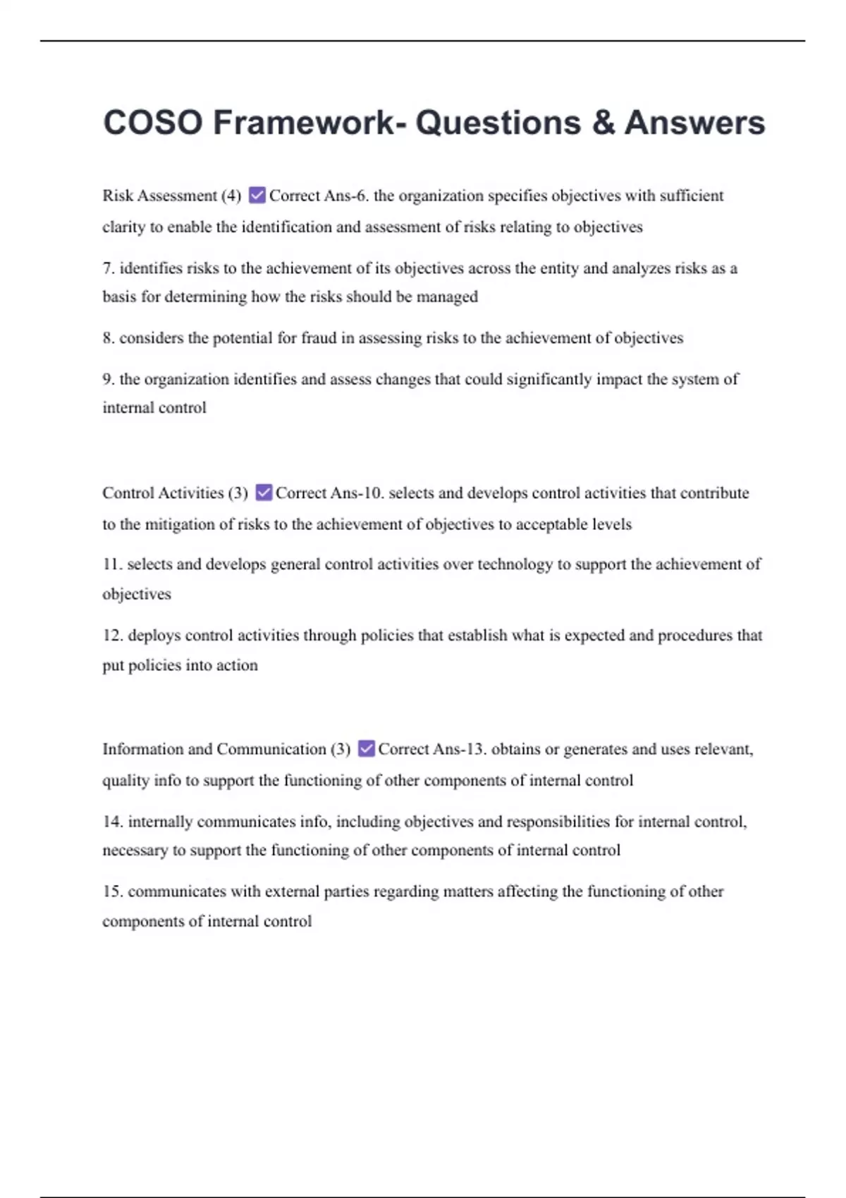 Risk Assessment (4) Correct Ans-6. the organization specifies objectives with sufficient
