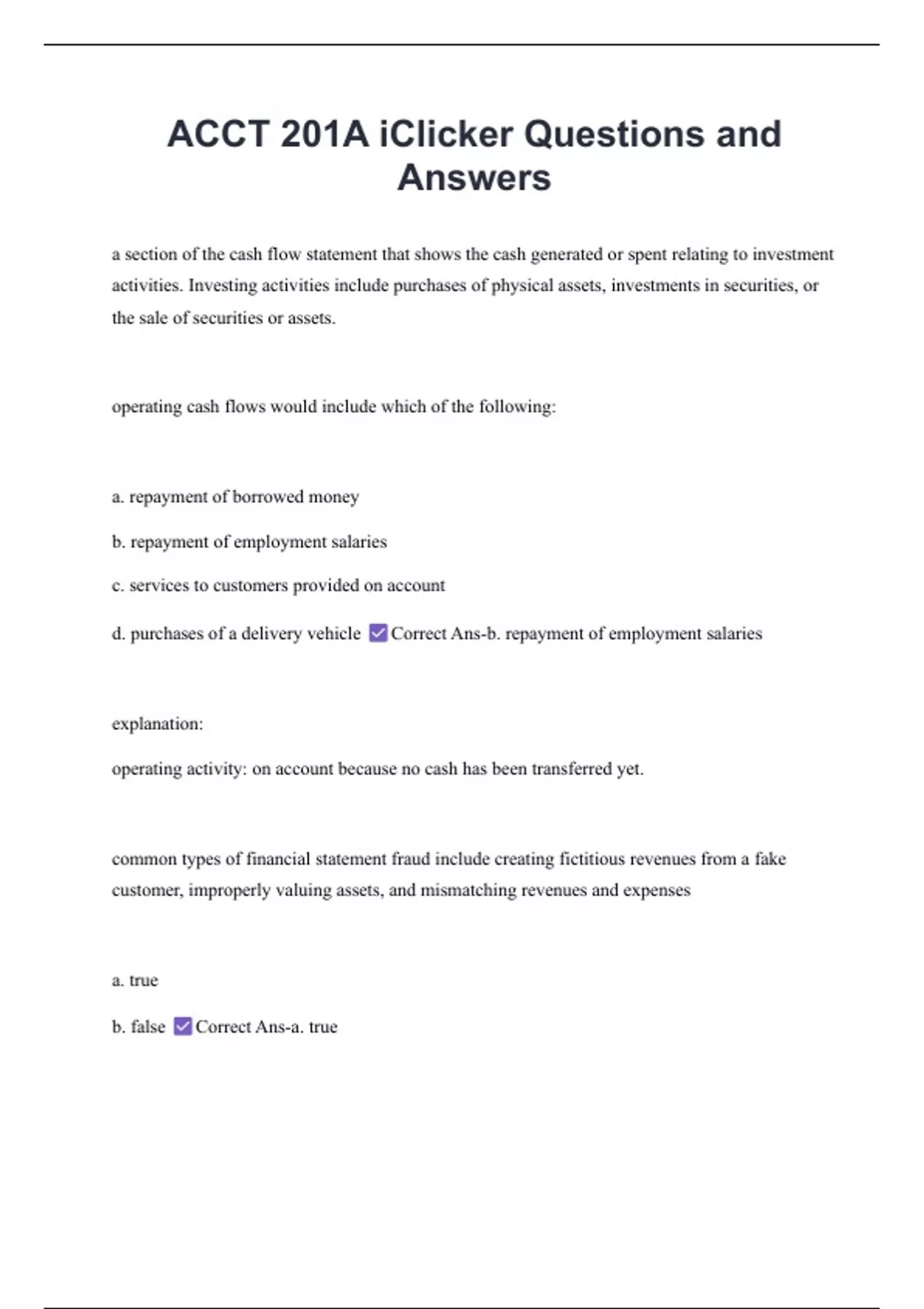 ACCT 201A iClicker Questions and Answers