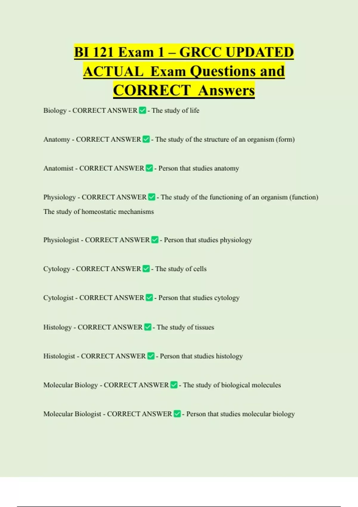 Biology - CORRECT ANSWER - The study of life