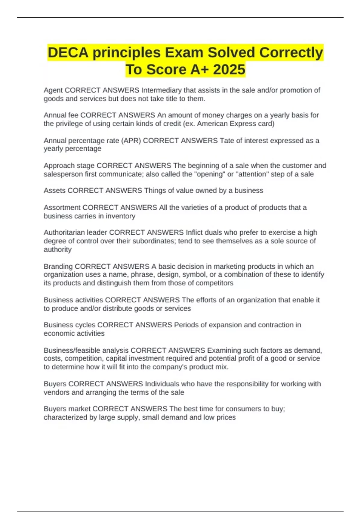DECA principles Exam Solved Correctly