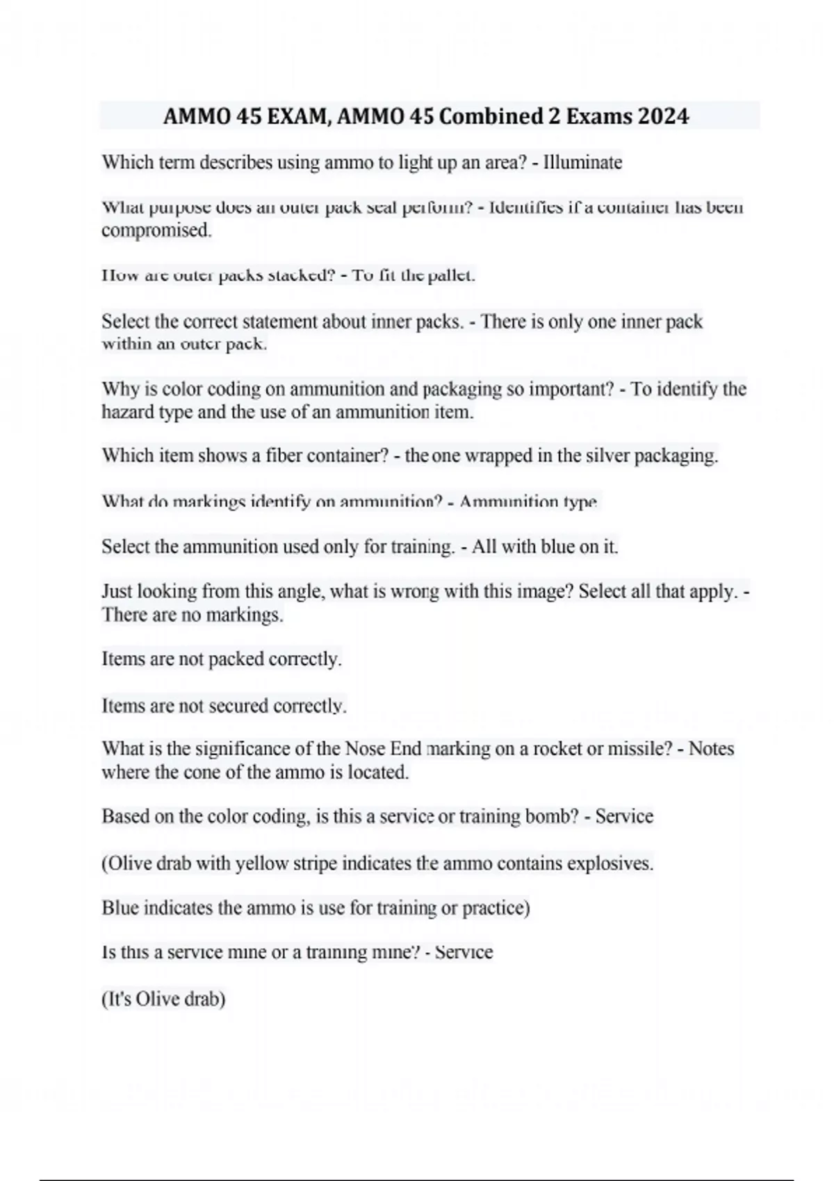 AMMO 45 EXAM, AMMO 45 Combined 2 Exams 2024