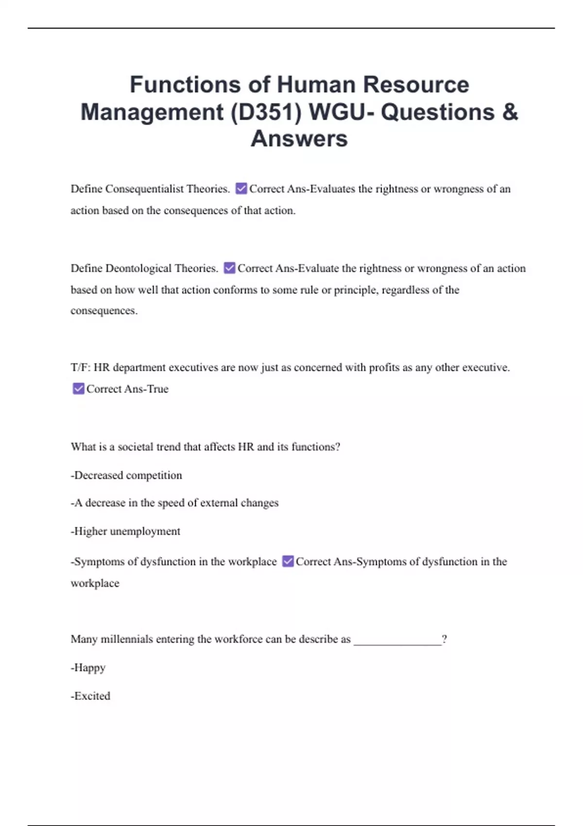Management (D351) WGU- Questions &