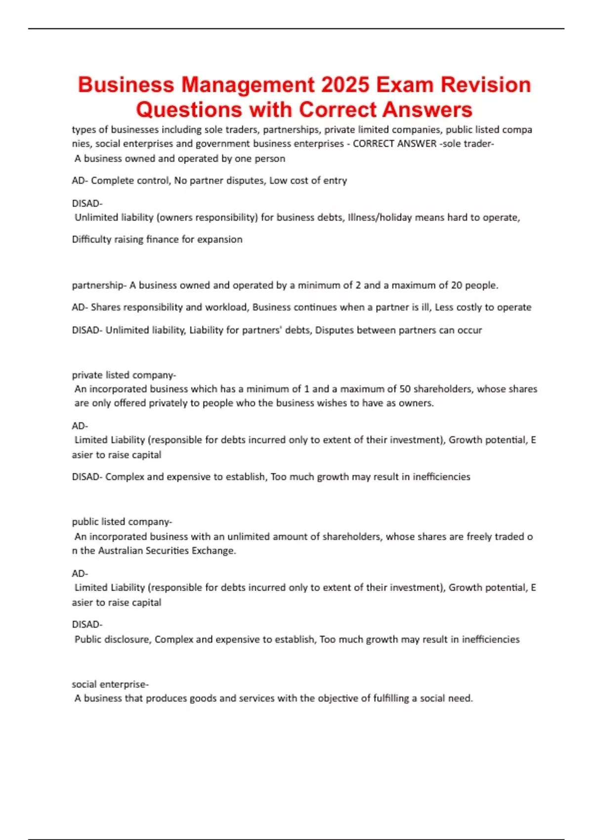 Business Management 2025 Exam Revision
