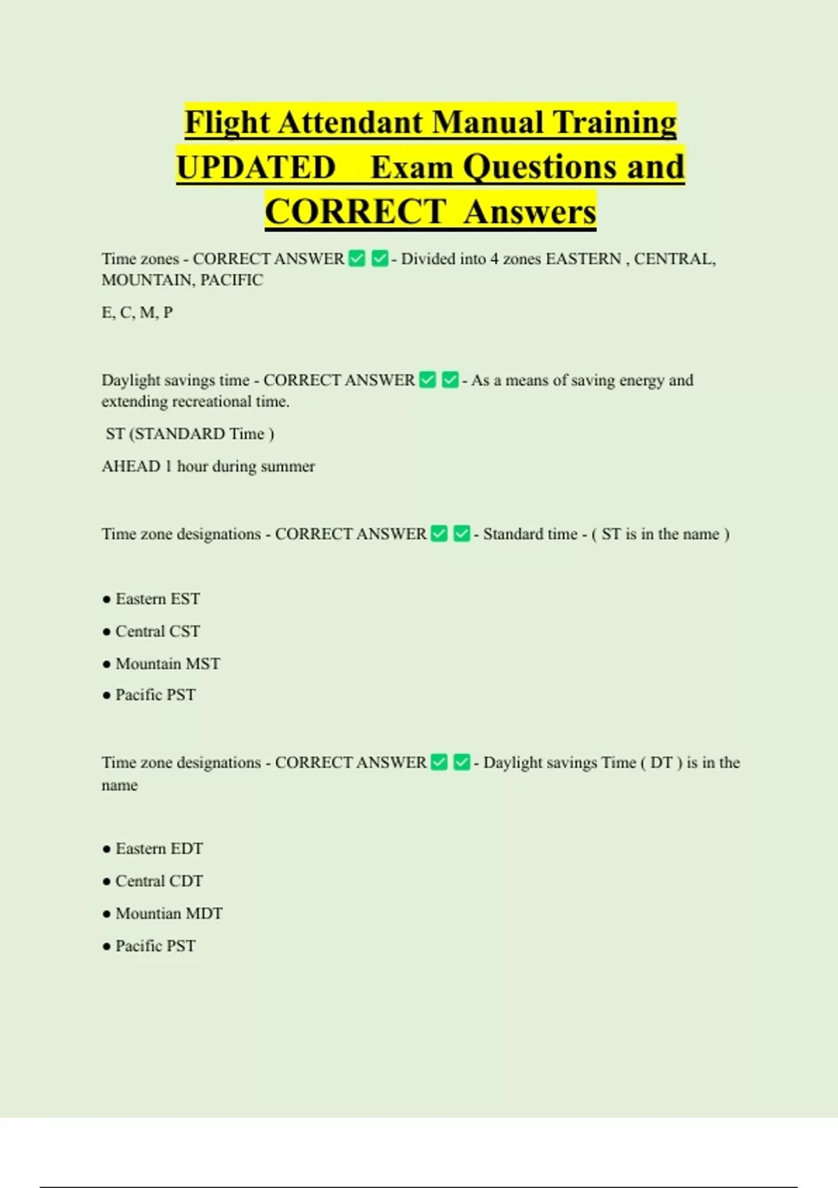 Flight Attendant Manual Training UPDATED Exam Questions and CORRECT Answers