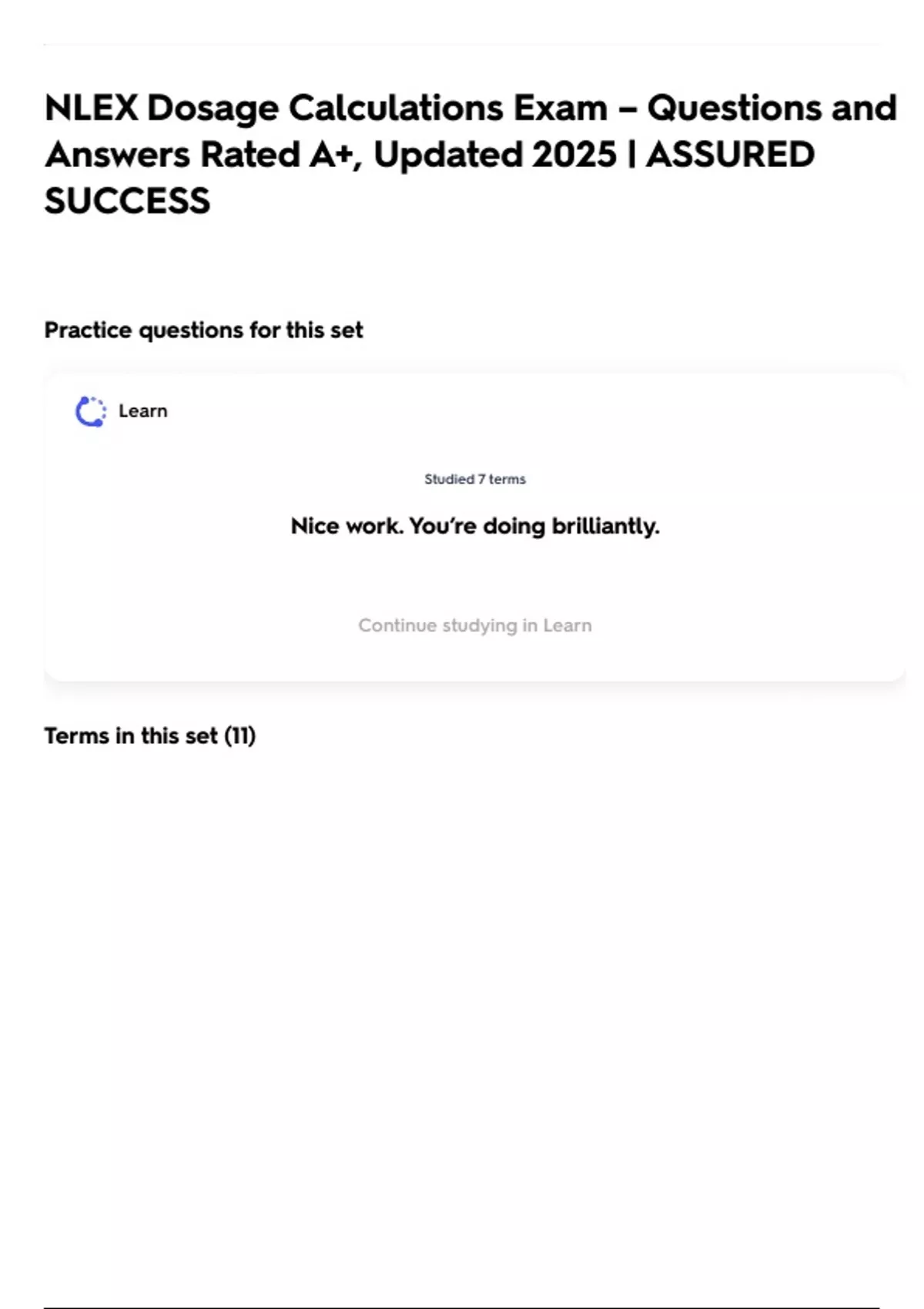 NLEX Dosage Calculations Exam – Questions and Answers Rated A+, Updated 2025 | ASSURED SUCCESS