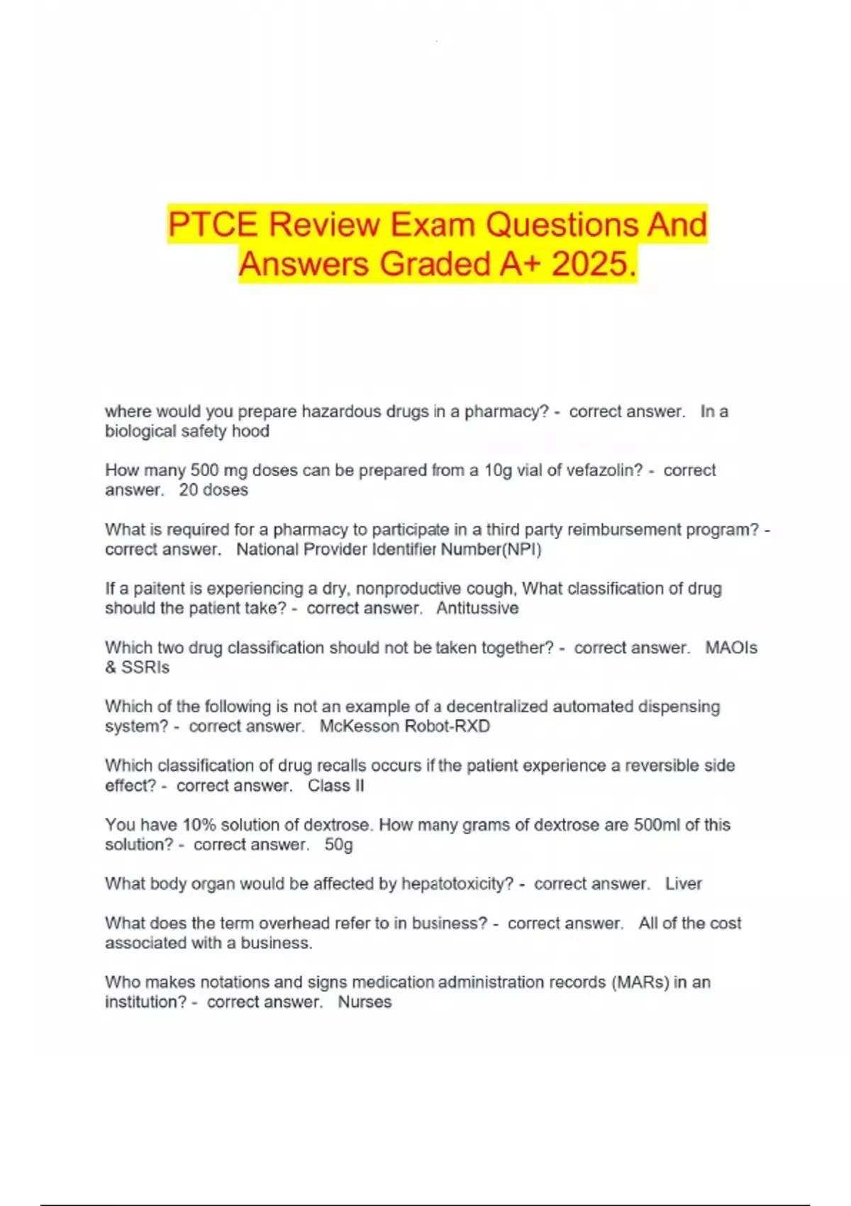 PTCE Review Exam Questions And Answers Graded A+ 2025.