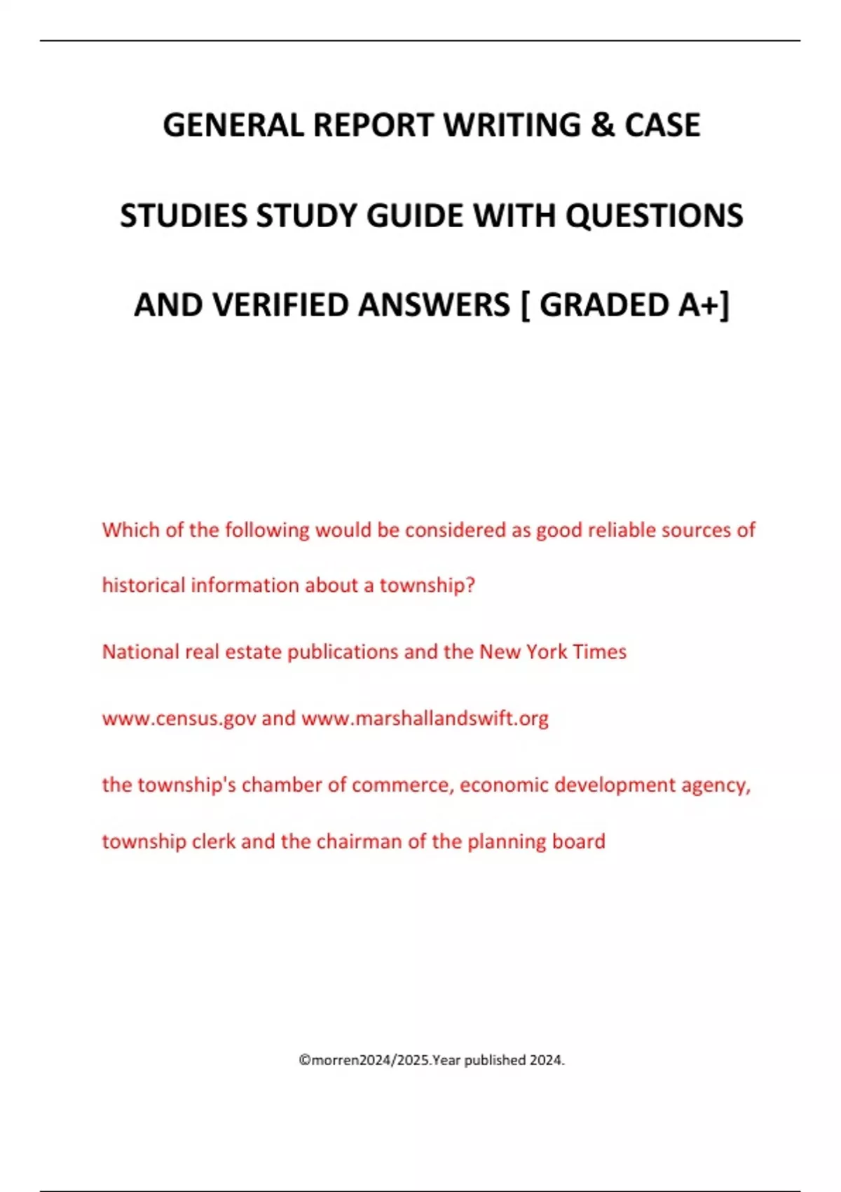 GENERAL REPORT WRITING & CASE STUDIES STUDY GUIDE WITH QUESTIONS AND VERIFIED ANSWERS [ GRADED A+]