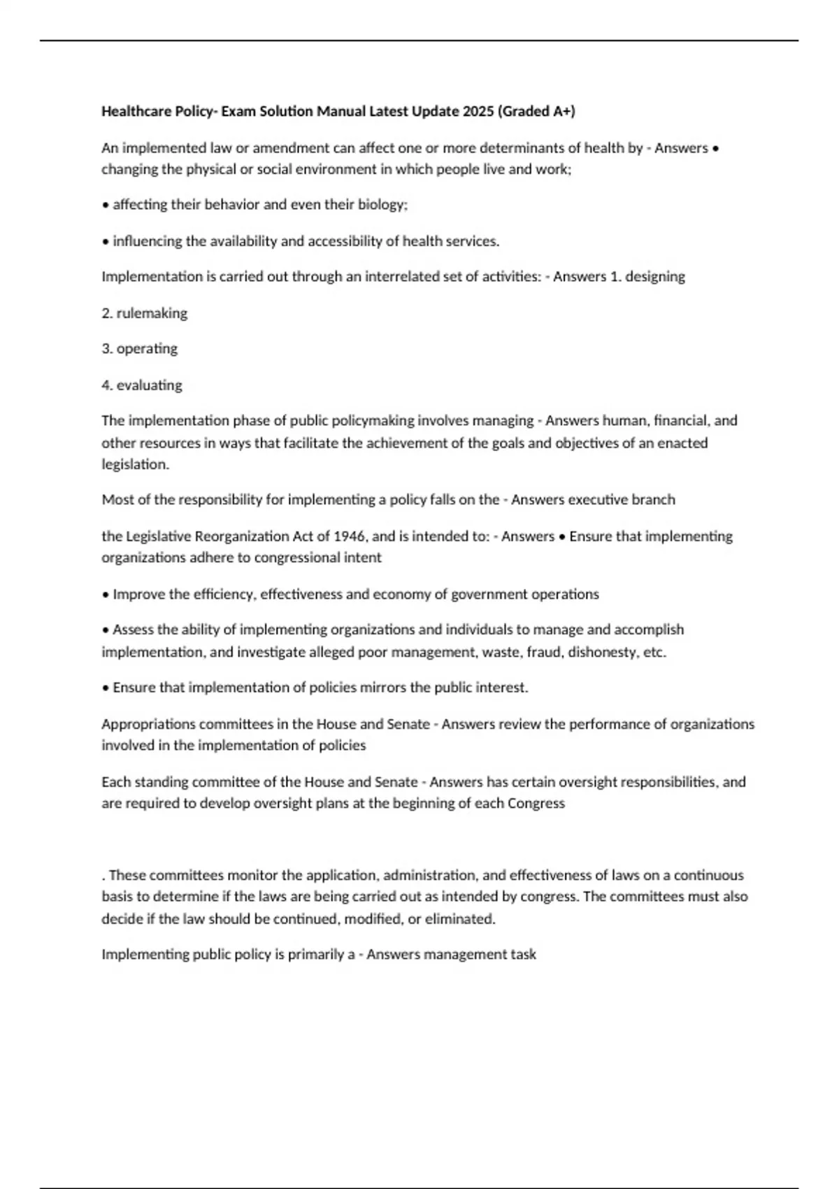 the Legislative Reorganization Act of 1946, and is intended to: - Answers • Ensure that implementing