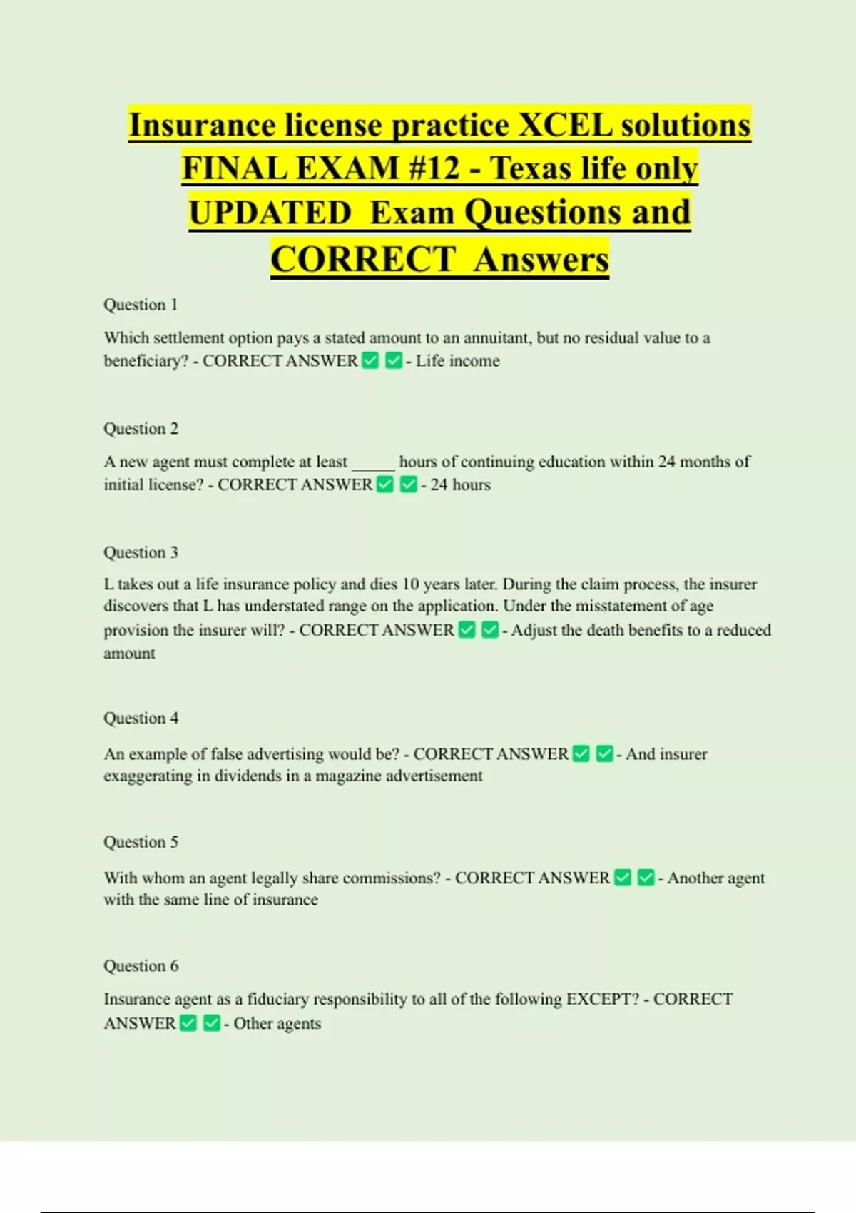 FINAL EXAM #12 - Texas life only