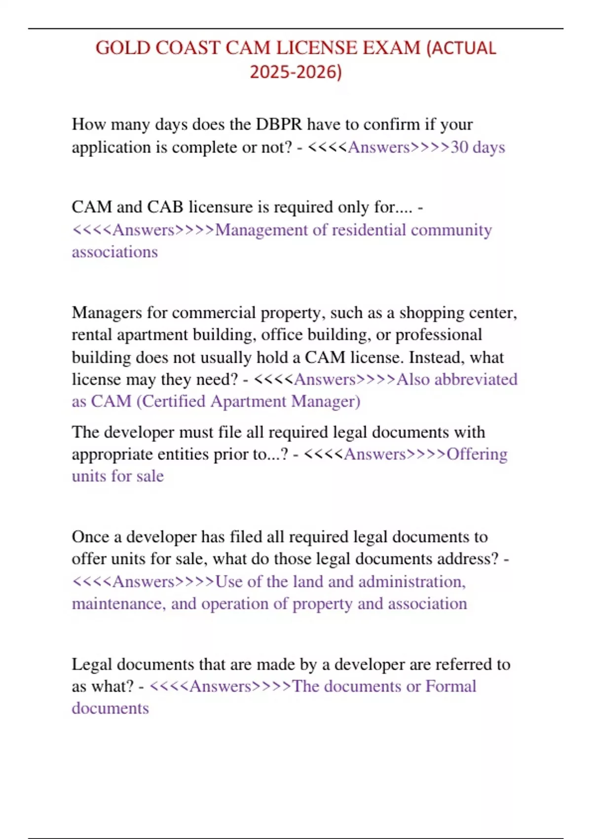 , GOLD COAST CAM LICENSE EXAM (ACTUAL