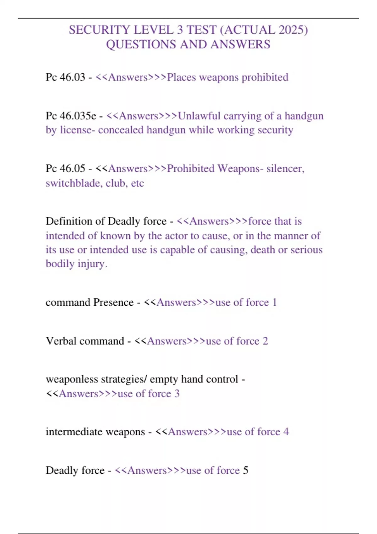 SECURITY LEVEL 3 TEST (ACTUAL 2025) QUESTIONS AND ANSWERS