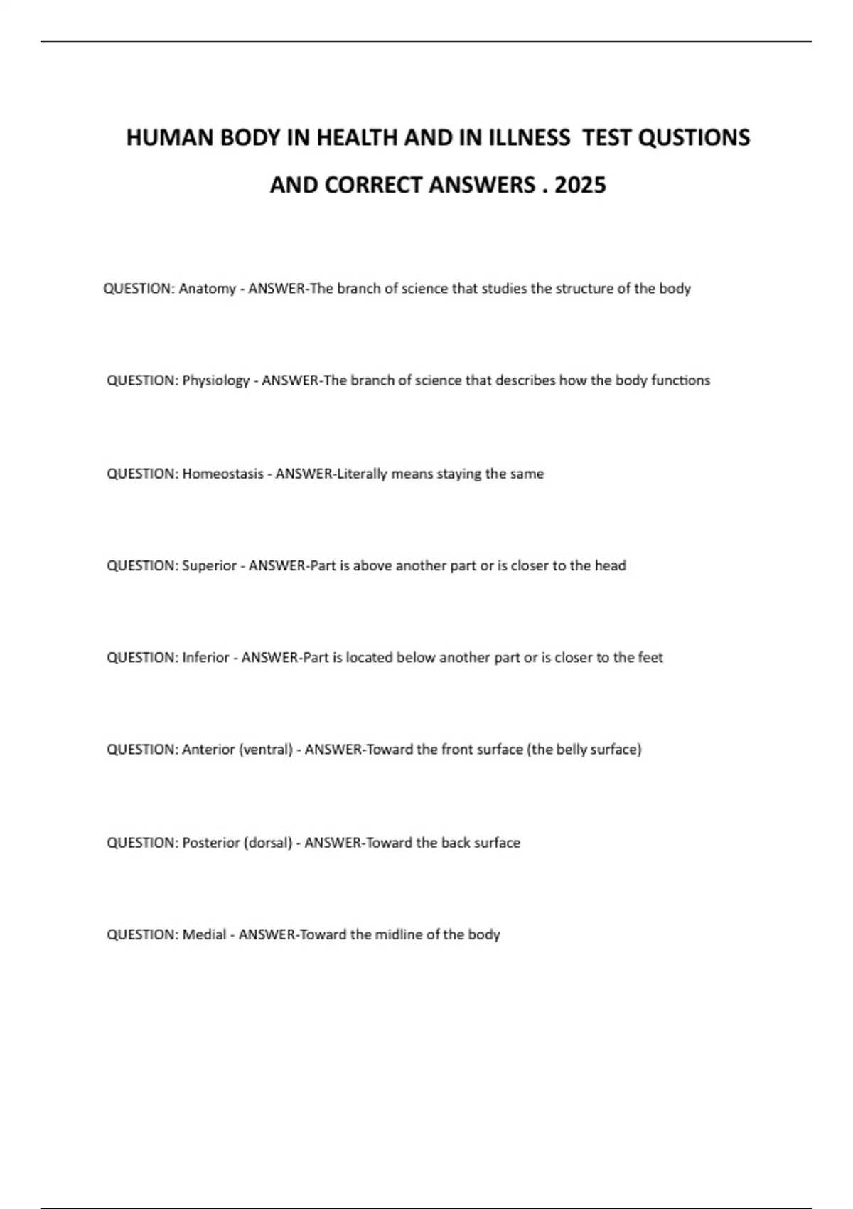 HUMAN BODY IN HEALTH AND IN ILLNESS TEST QUSTIONS