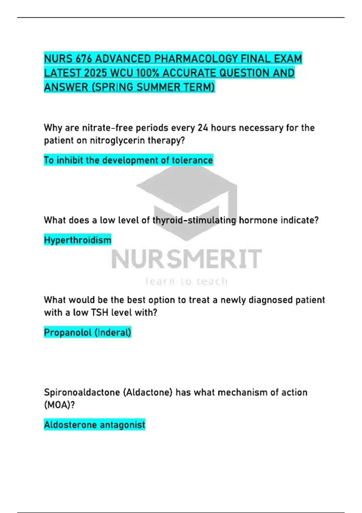 NURS 676 ADVANCED PHARMACOLOGY FINAL EXAM LATEST 2025 WCU 100% ACCURATE QUESTION AND ANSWER (SPRING SUMMER TERM)