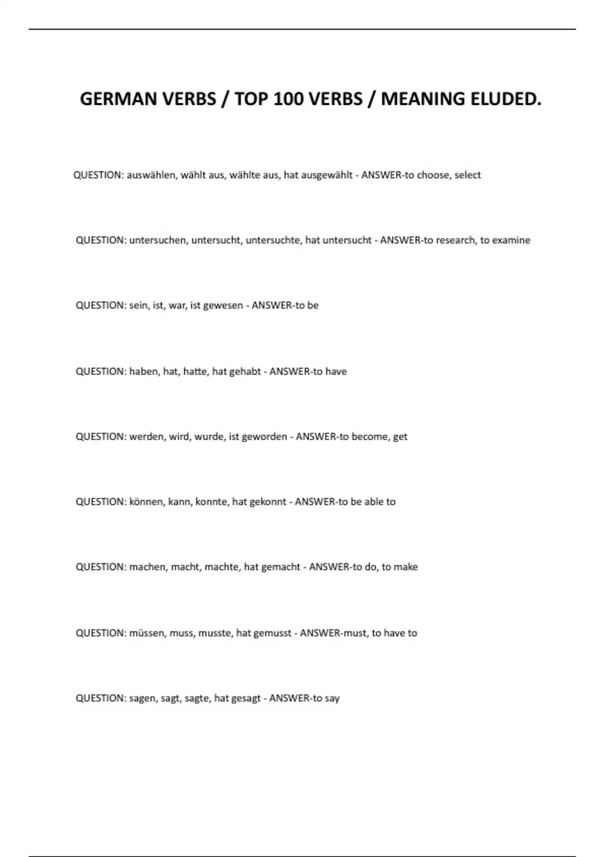 GERMAN VERBS / TOP 100 VERBS / MEANING ELUDED.