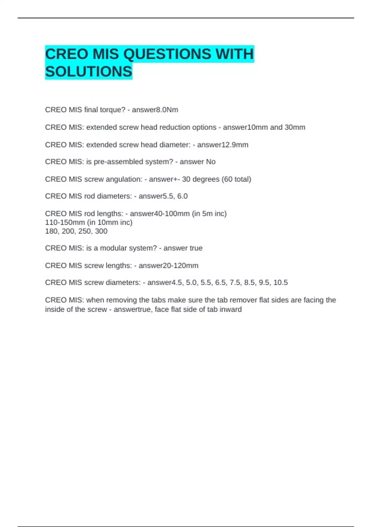 CREO MIS final torque? - answer8.0Nm