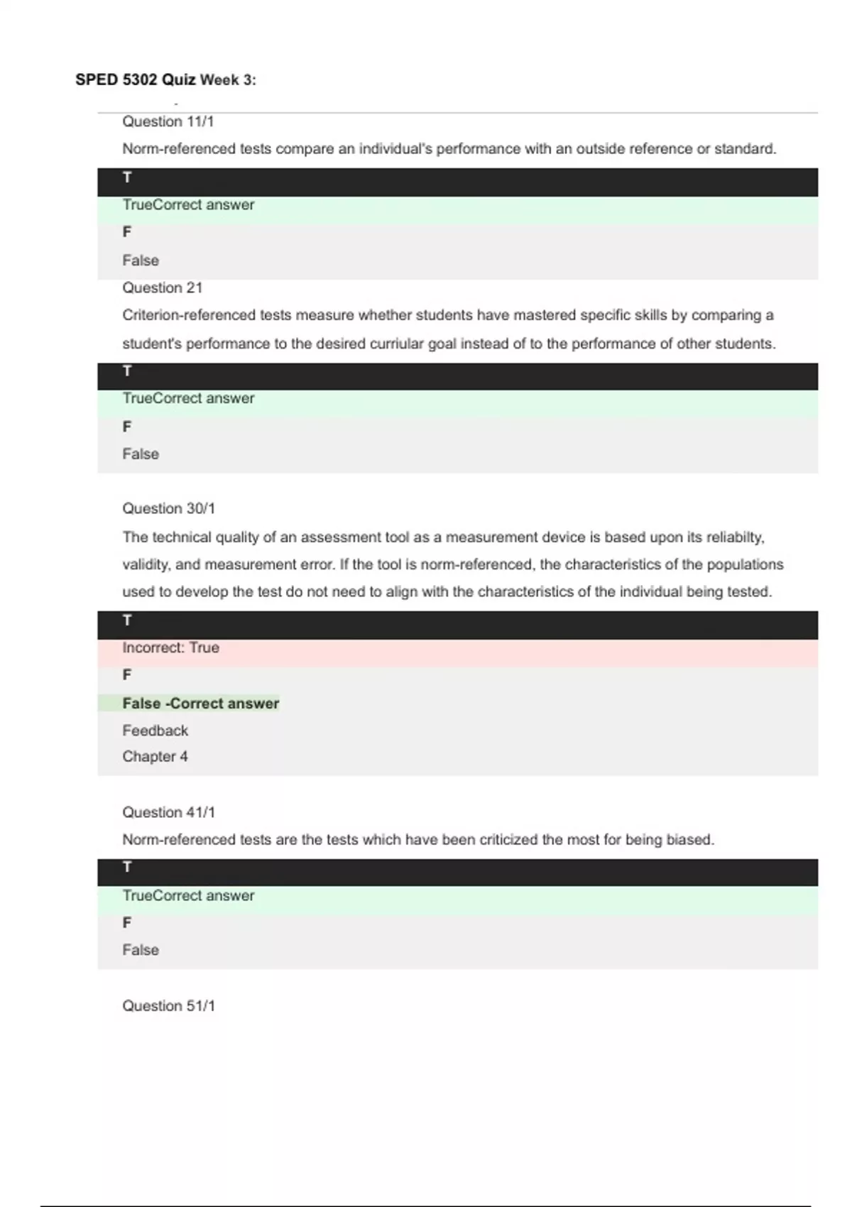 ​ Norm-referenced tests compare an individual's performance with an outside reference or standard.