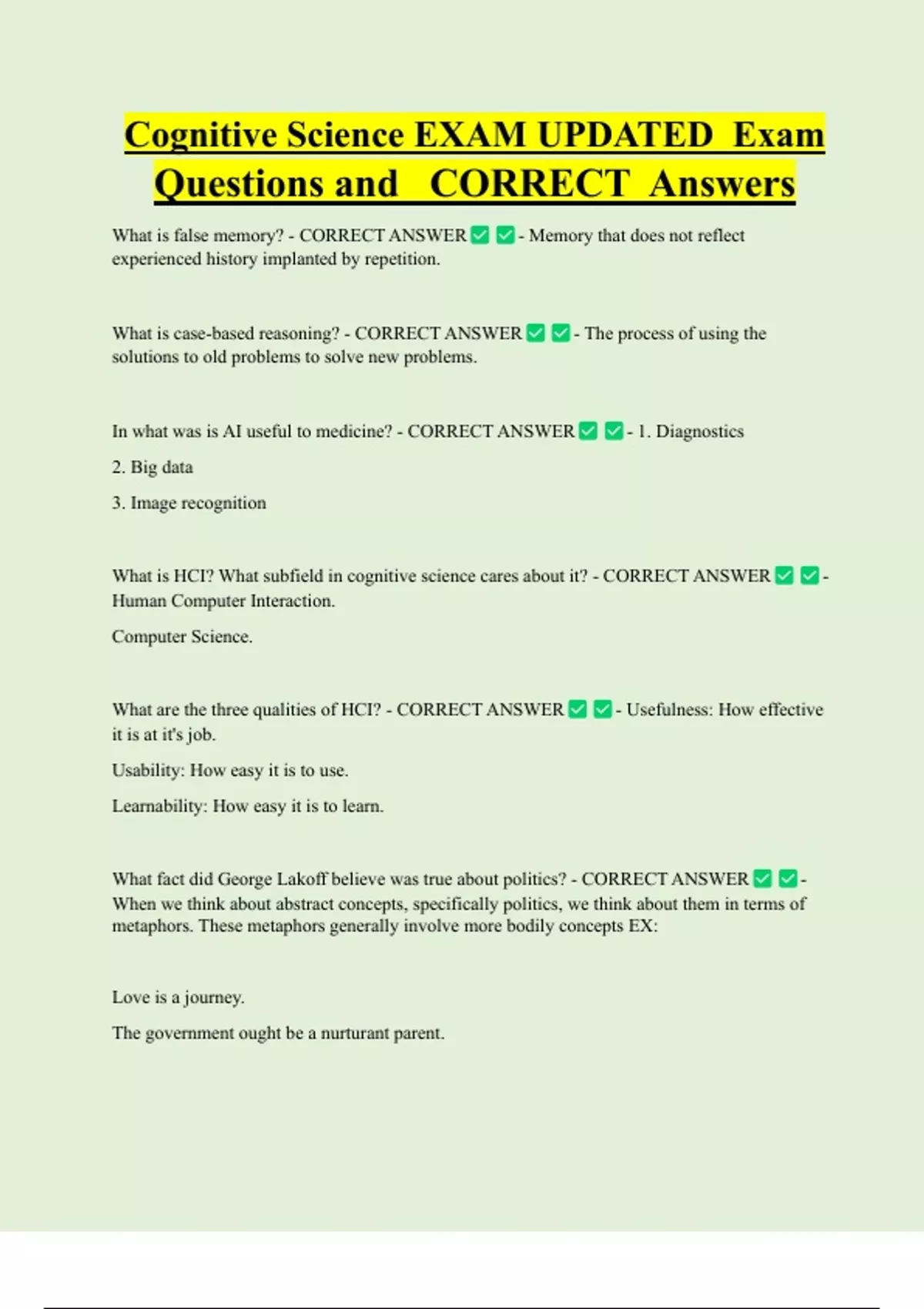 Questions and CORRECT Answers