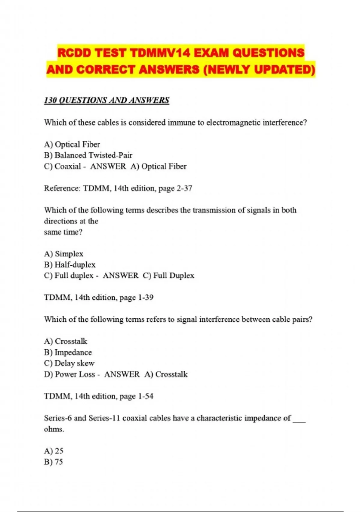RCDD TEST TDMMV14 EXAM QUESTIONS AND CORRECT ANSWERS (NEWLY UPDATED)