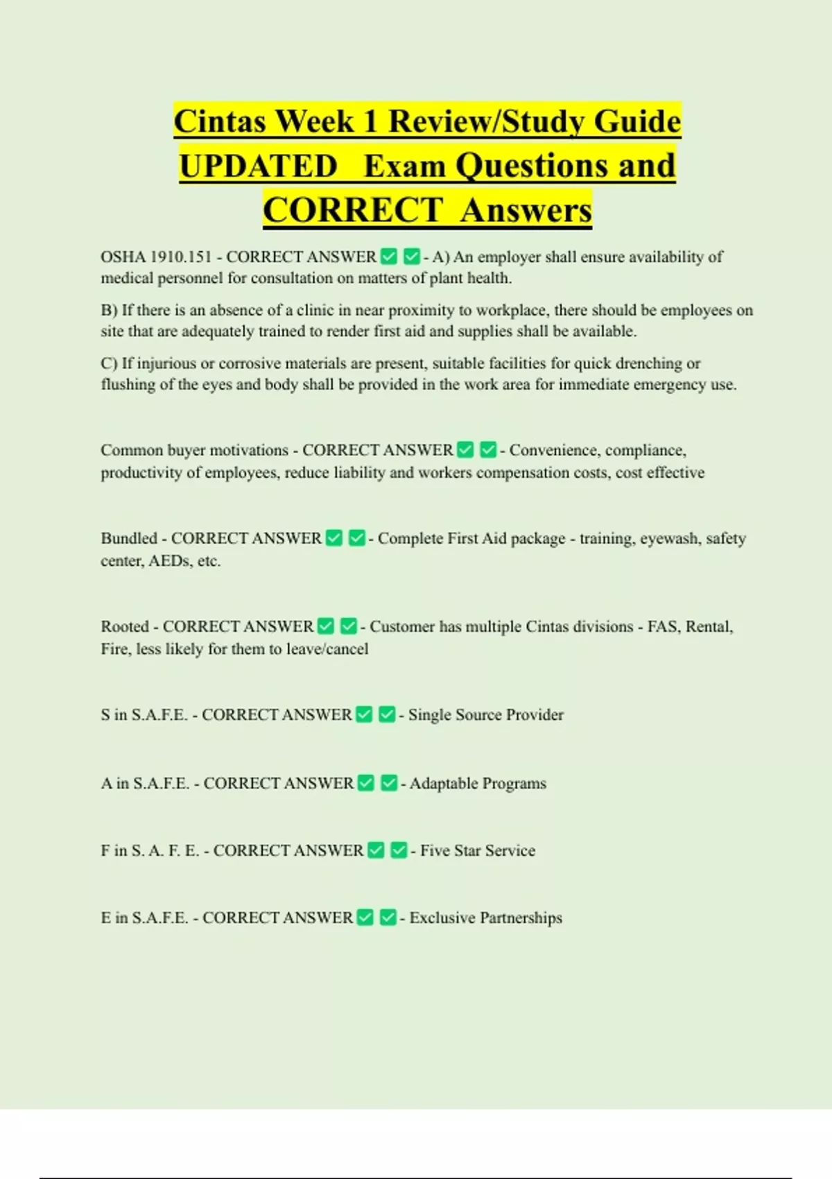 , Cintas FAS Unique Characteristics - CORRECT ANSWER - S.A.F.E., Eyewash service,
