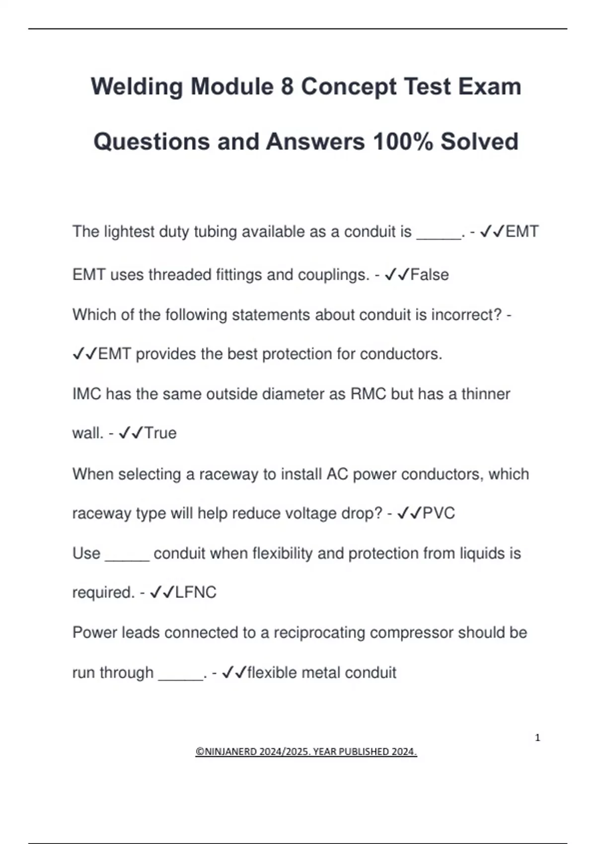 EMT uses threaded fittings and couplings. - ✔✔False