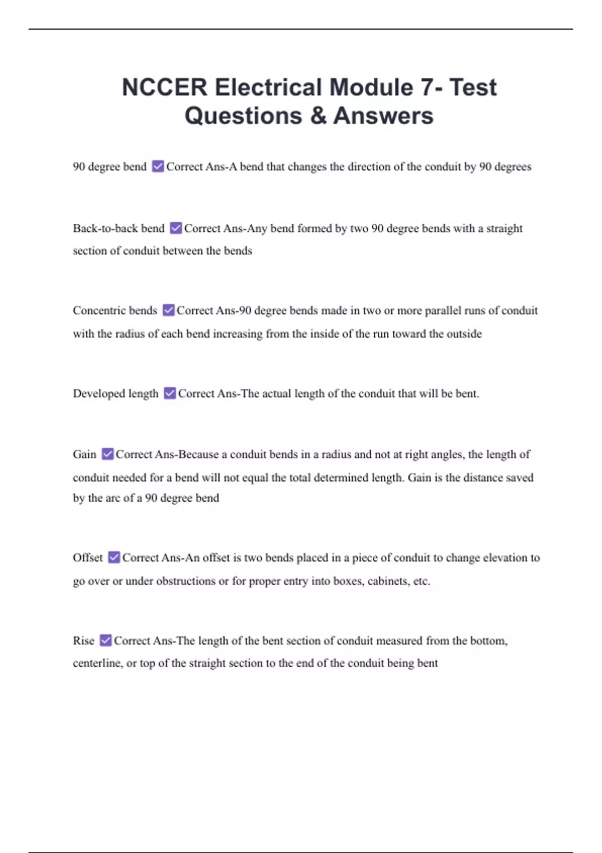 90 degree bend Correct Ans-A bend that changes the direction of the conduit by 90 degrees