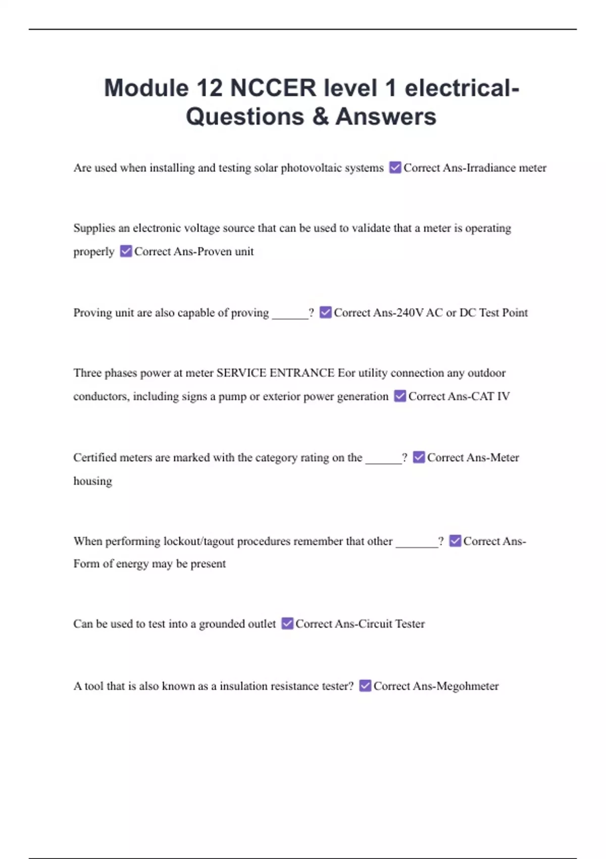 Module 12 NCCER level 1 electrical- Questions & Answers