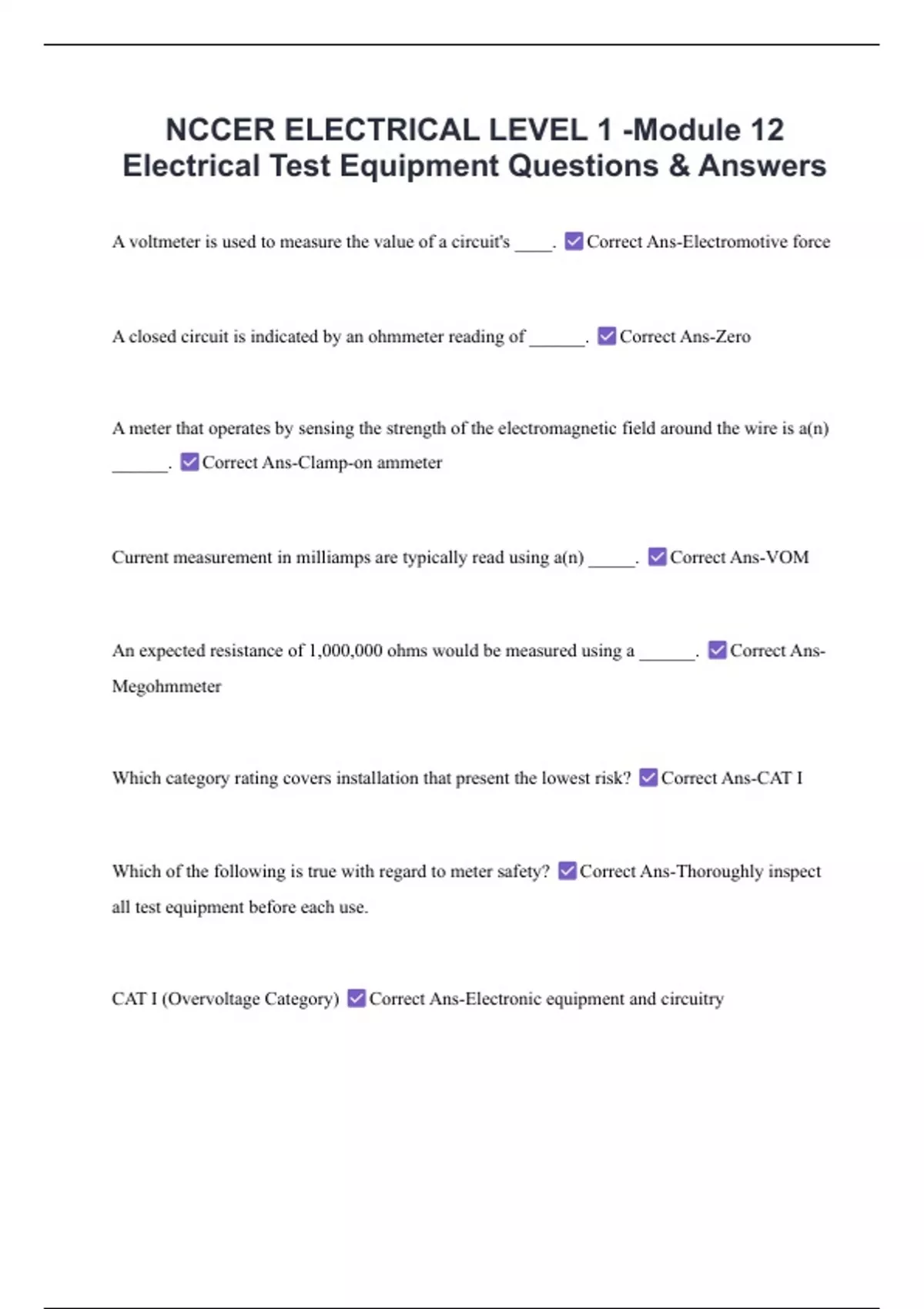 Electrical Test Equipment Questions & Answers