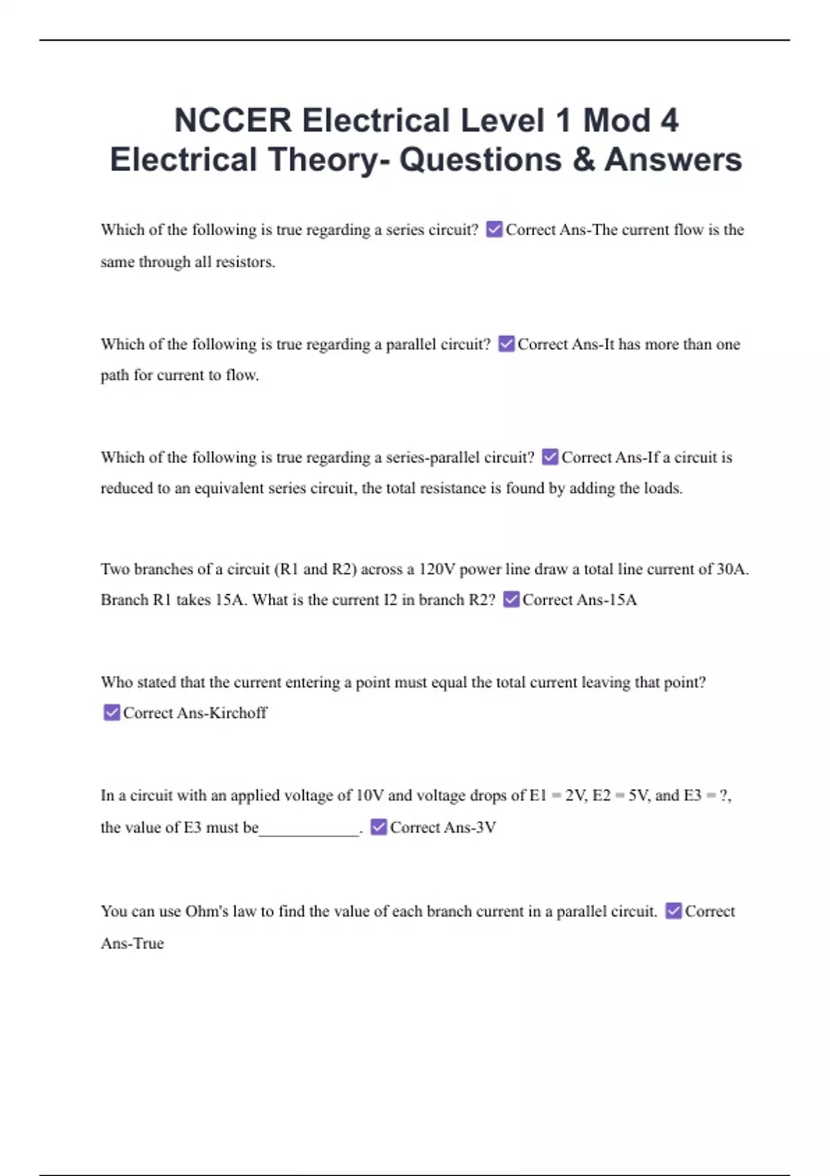 NCCER Electrical Level 1 Mod 4 Electrical Theory- Questions & Answers
