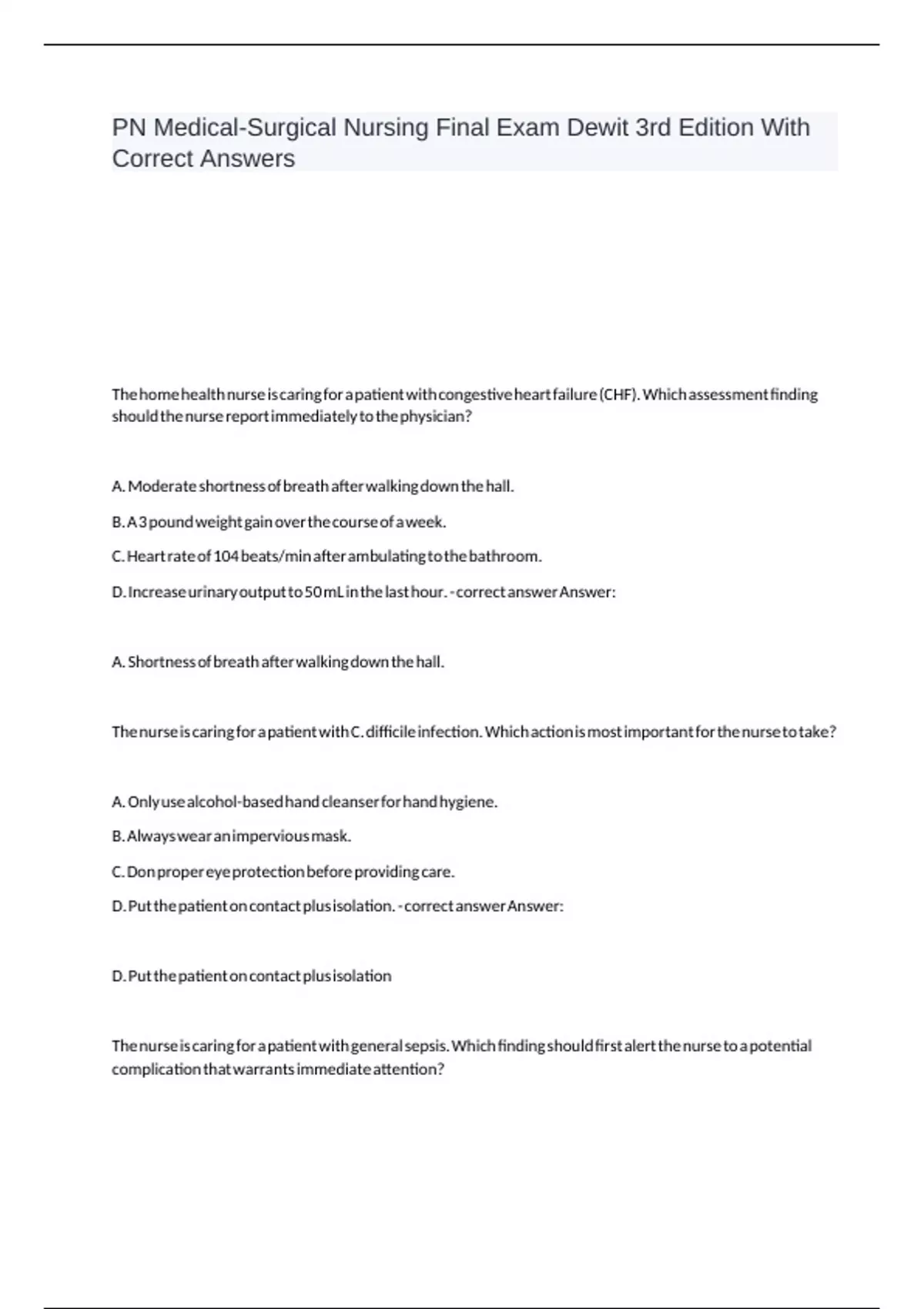 D. Put the patient on contact plus isolation. - correct answer Answer:
