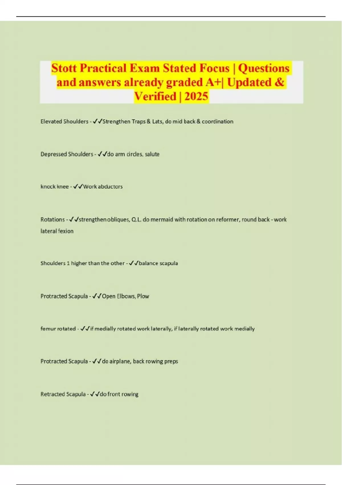 Stott Practical Exam Stated Focus | Questions and answers already graded A+| Updated & Verified | 2025