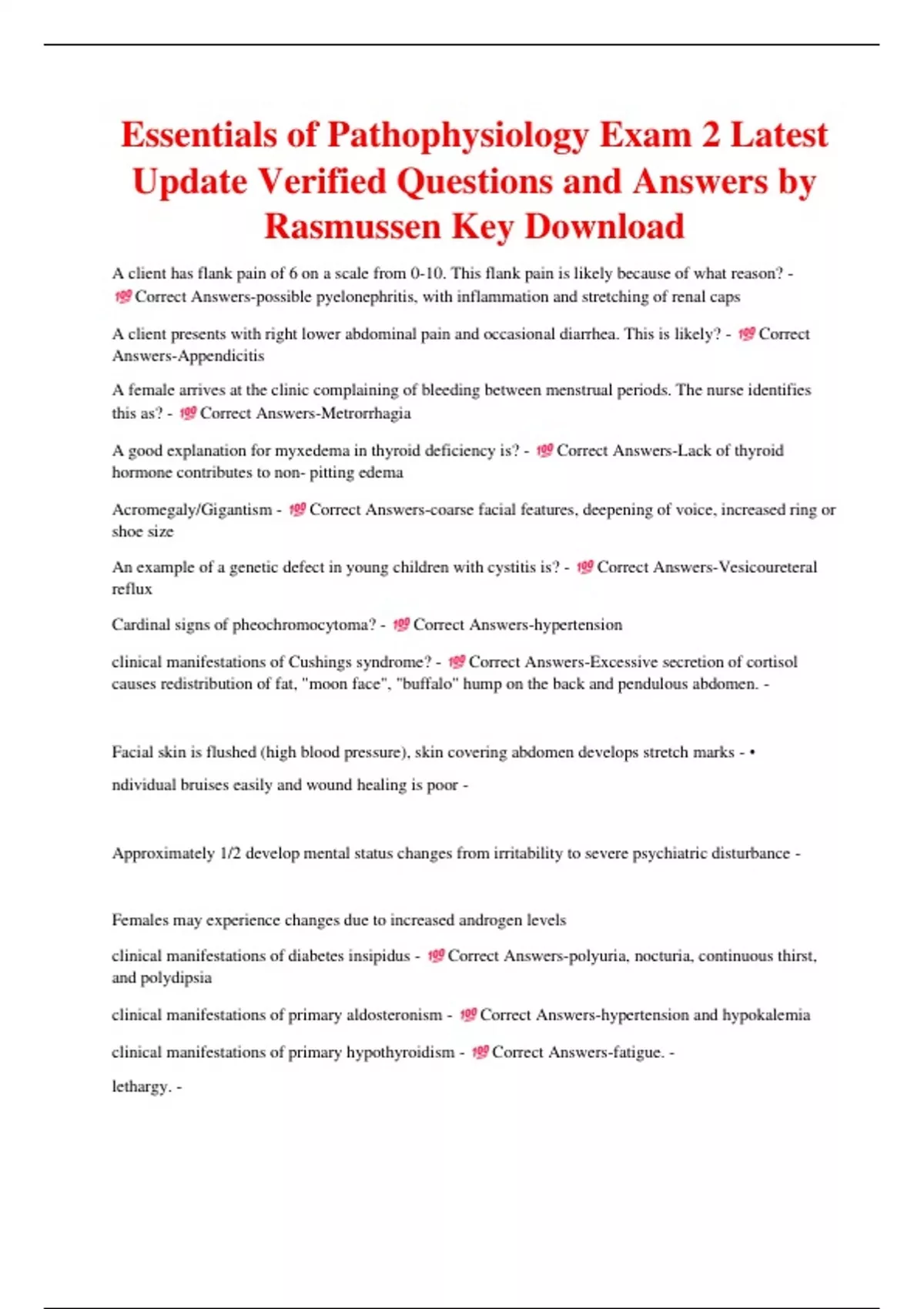 clinical manifestations of Cushings syndrome? - Correct Answers-Excessive secretion of cortisol
