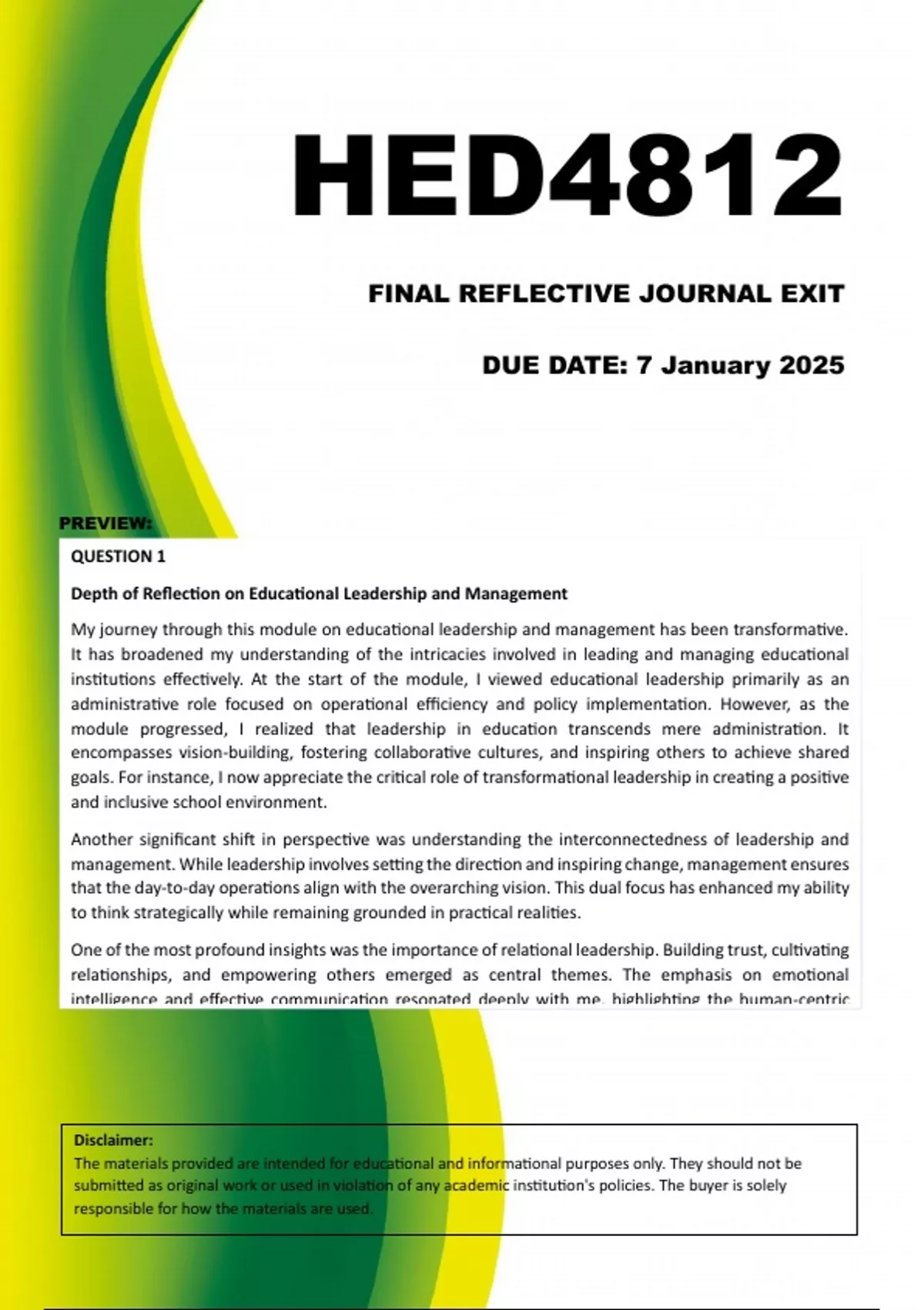 HED4812 Final Reflective Journal Exit - Due 7 January 2025