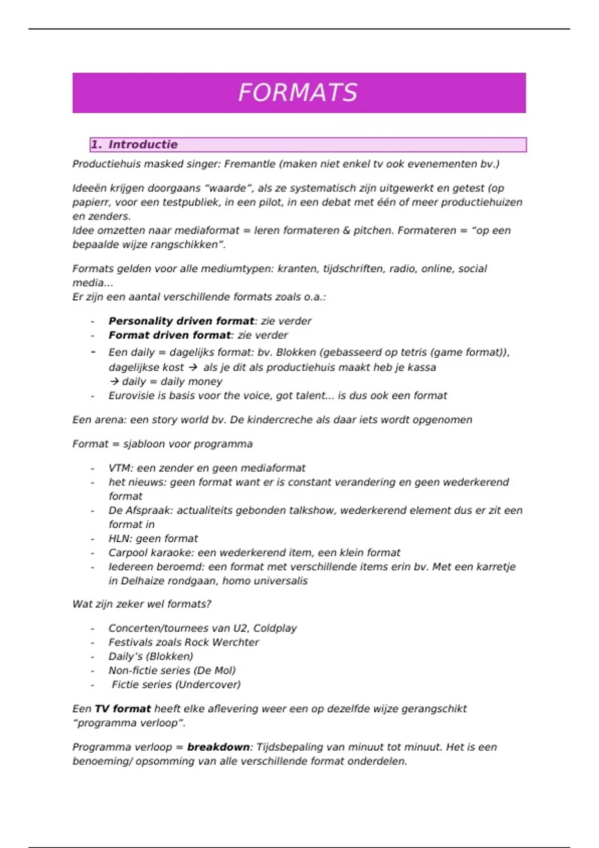 volledige samenvatting deel formats van creatie, concept & formats. Inclusief de gastsprekers.
