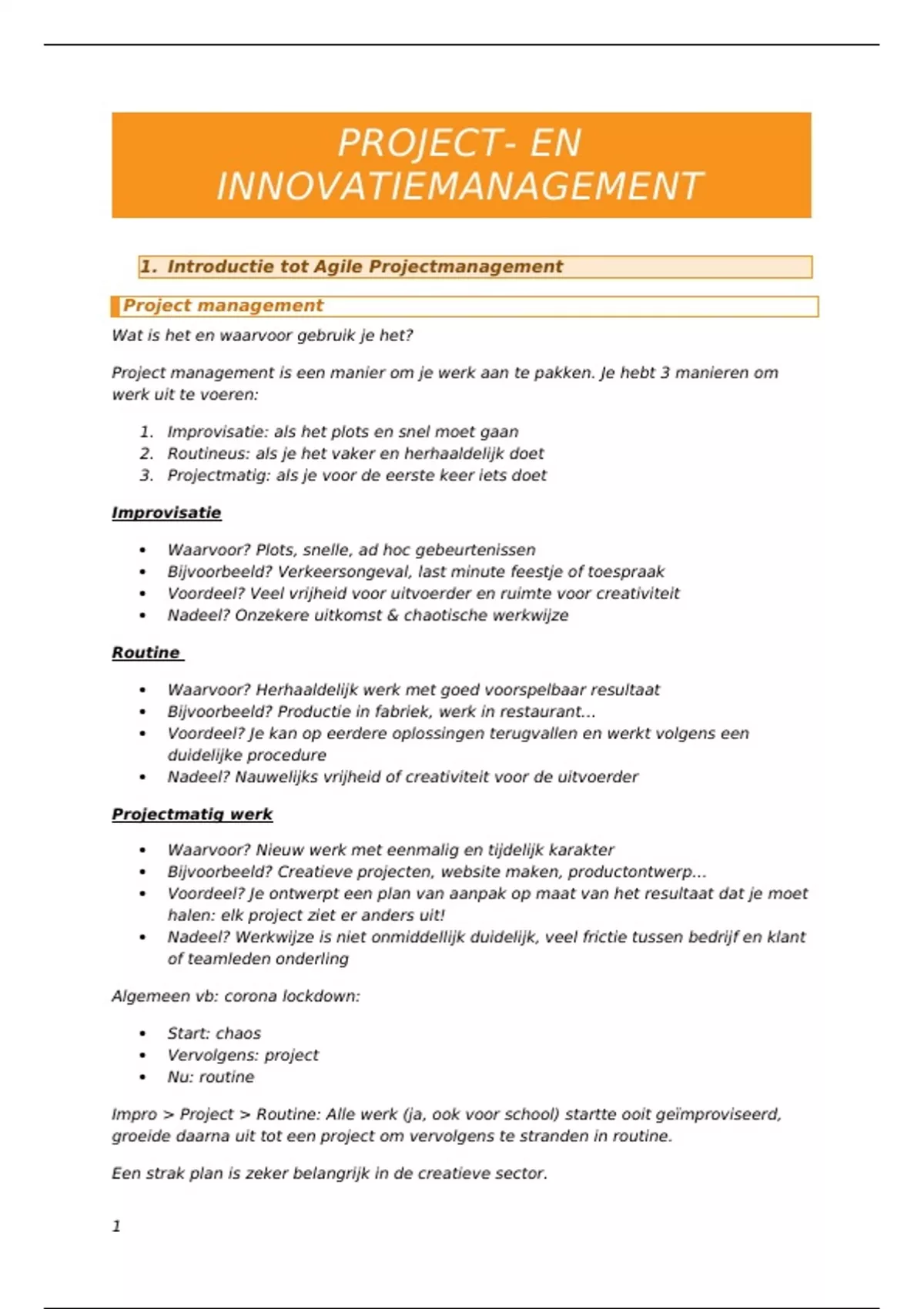 Volledige samenvatting project- en innovatiemanagement.