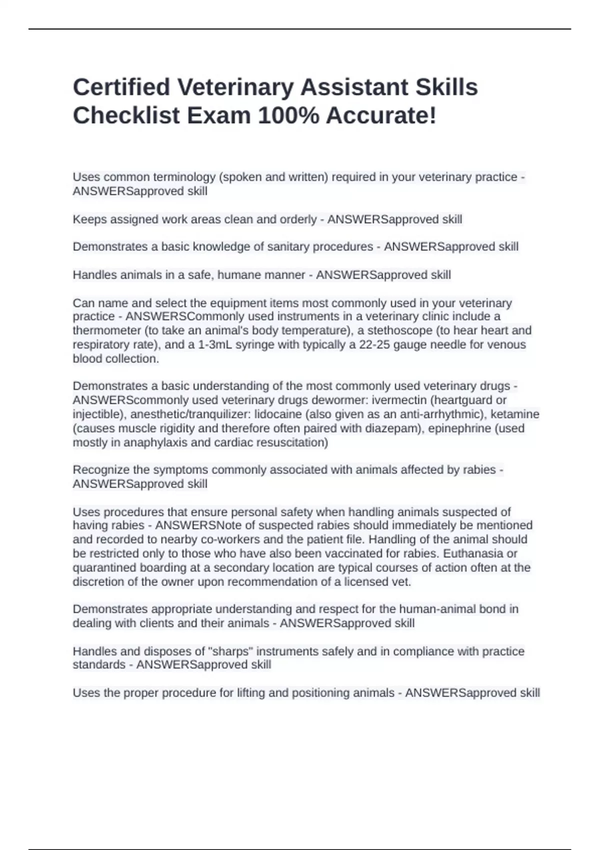 Certified Veterinary Assistant Skills Checklist Exam 100% Accurate!