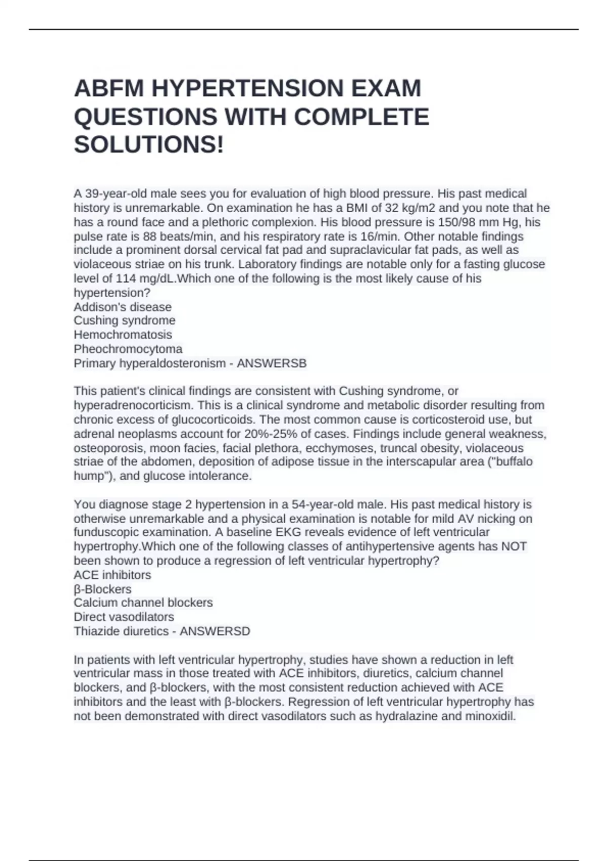 has a round face and a plethoric complexion. His blood pressure is 150/98 mm Hg, his