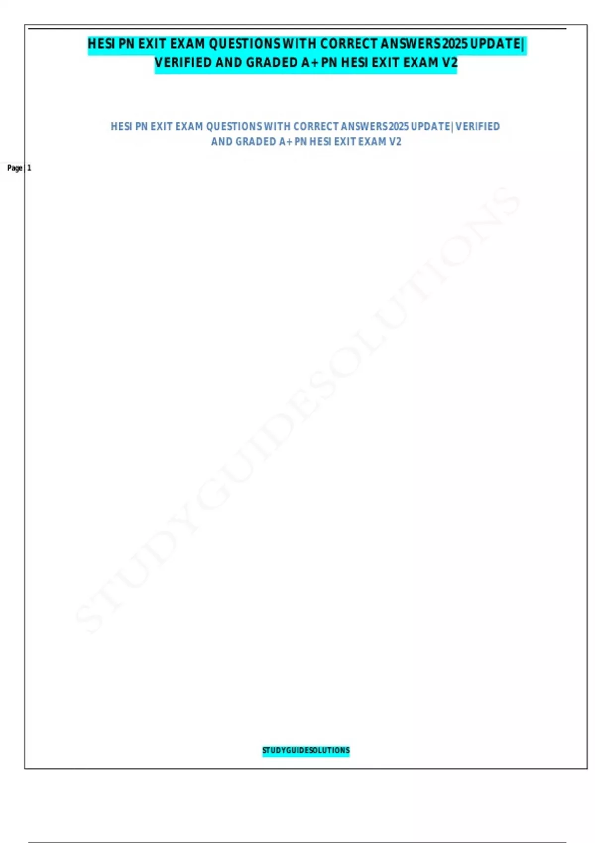 HESI PN EXIT EXAM QUESTIONS WITH CORRECT ANSWERS 2025 UPDATE| VERIFIED