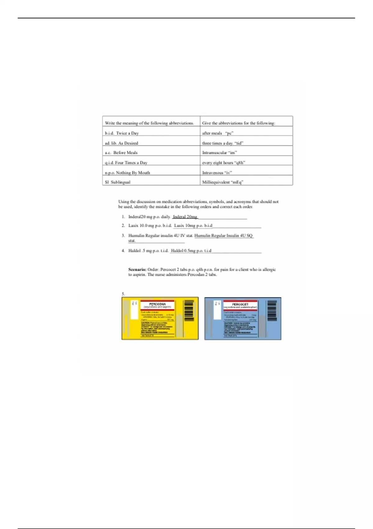 Scenario: Order: Percocet 2 tabs p.o. q4h p.r.n. for pain for a client who is allergic