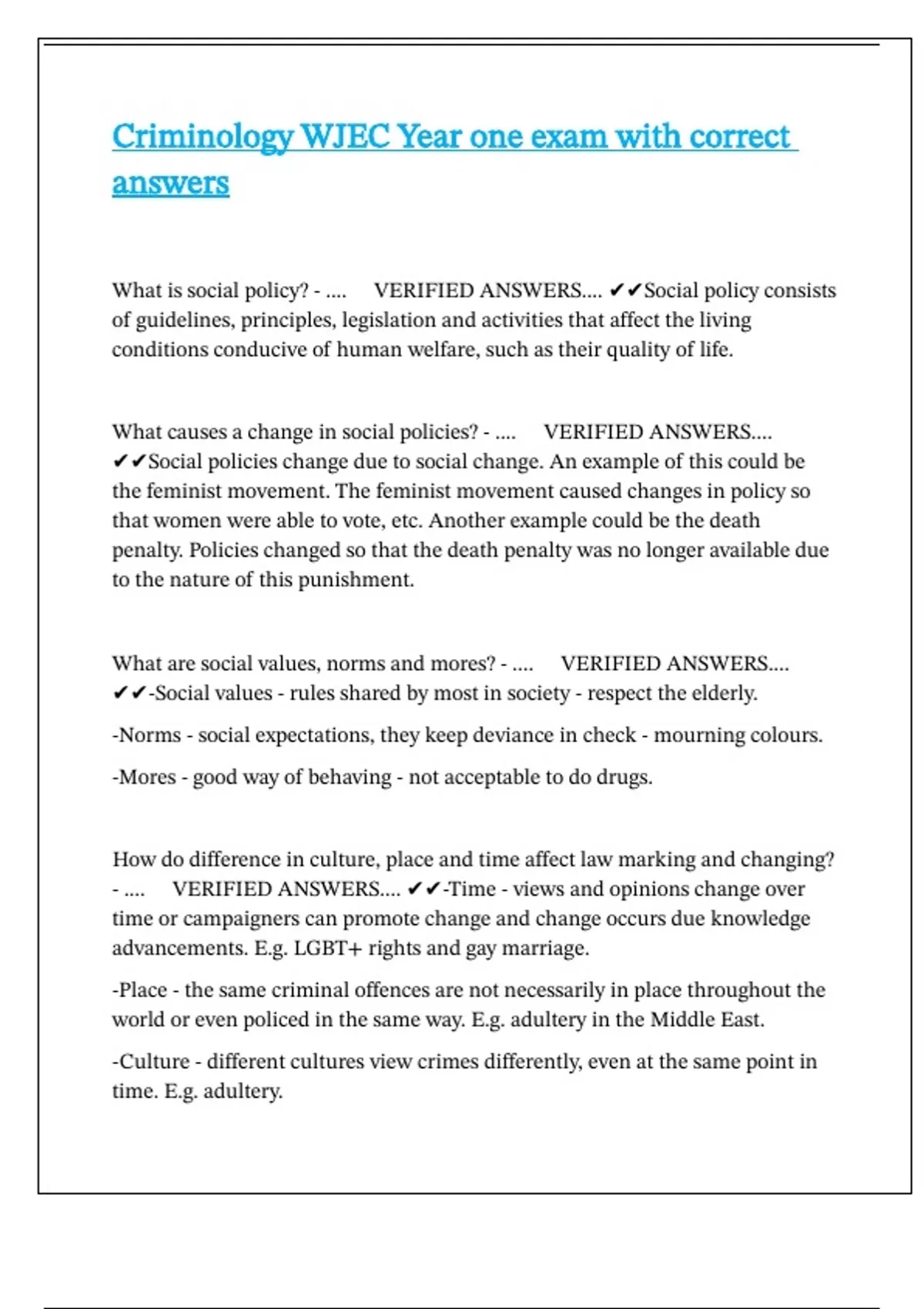 ✔✔-Social values - rules shared by most in society - respect the elderly.