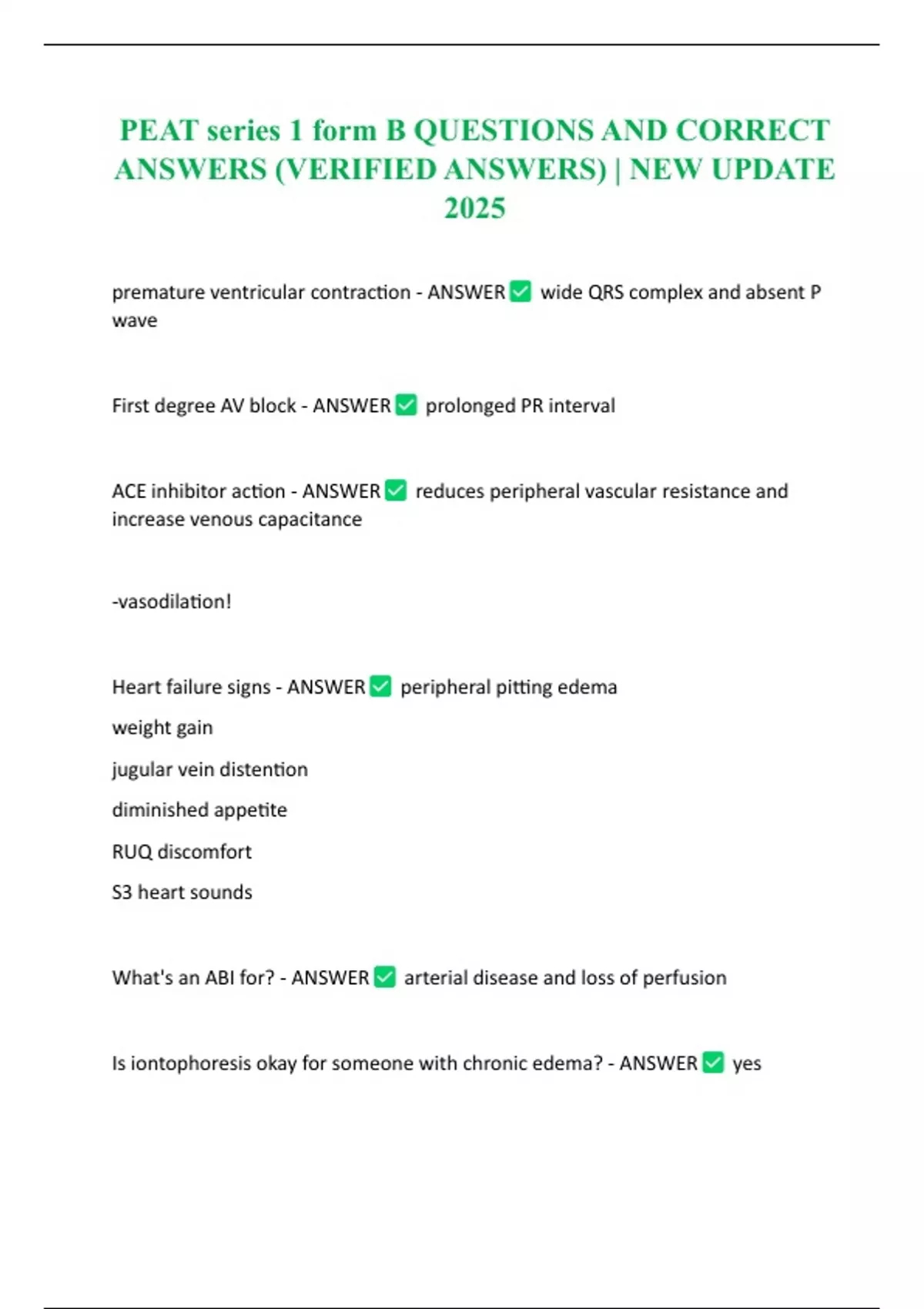 PEAT series 1 form B QUESTIONS AND CORRECT