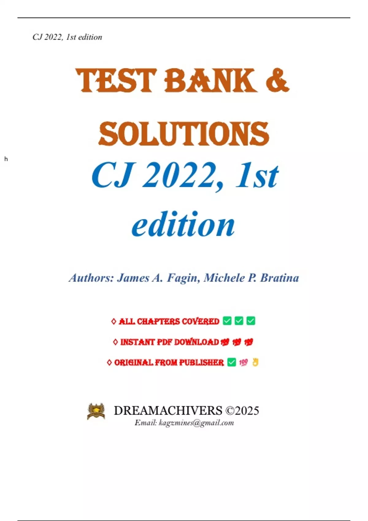 Test Bank For CJ 2022 1st Edition by James A. Fagin (All Chapters 1-14)
