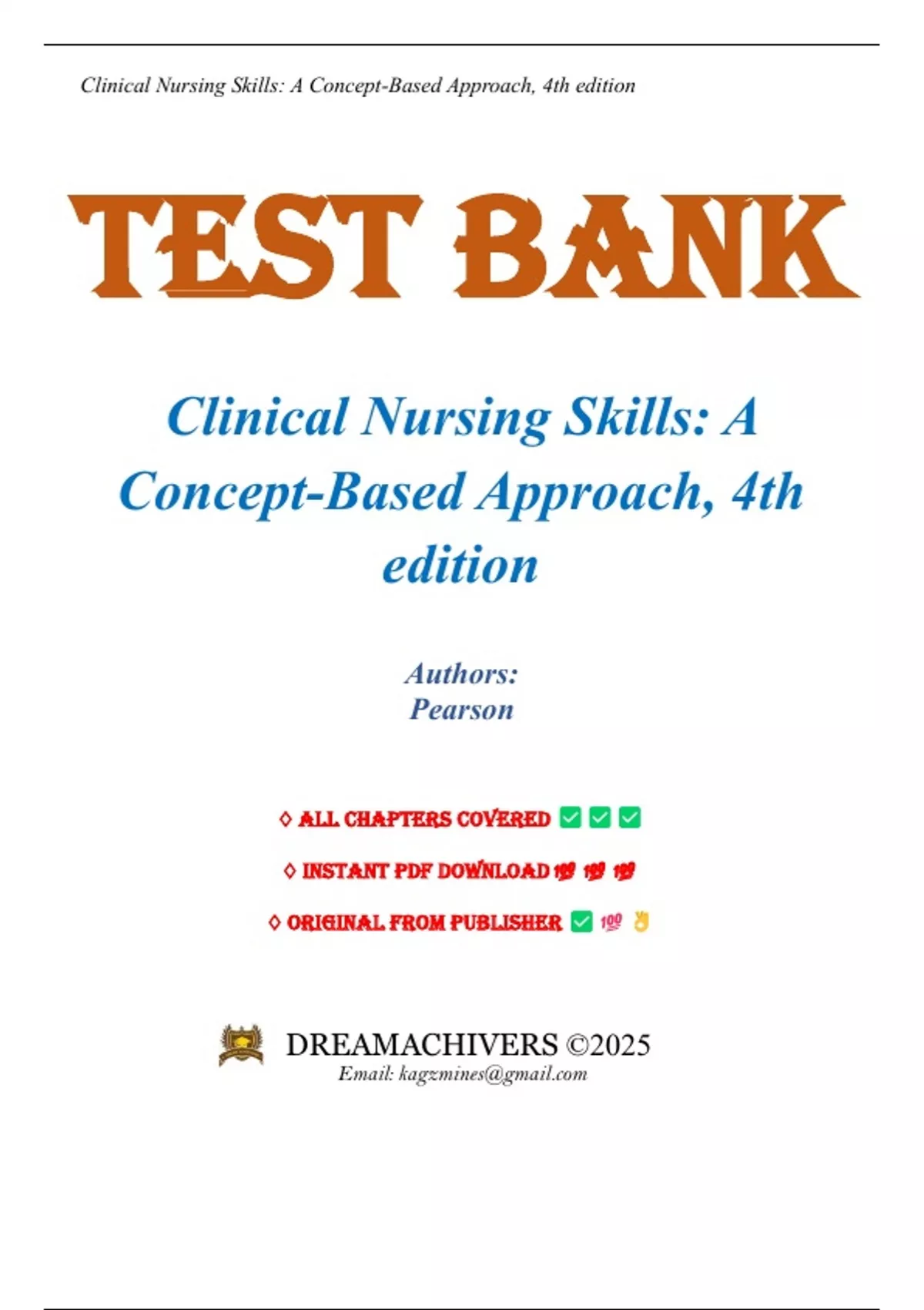 Test Bank - Clinical Nursing Skills: A Concept-Based Approach, 4th Edition (Callahan, 2023) Chapter 1-16 | All Chapters