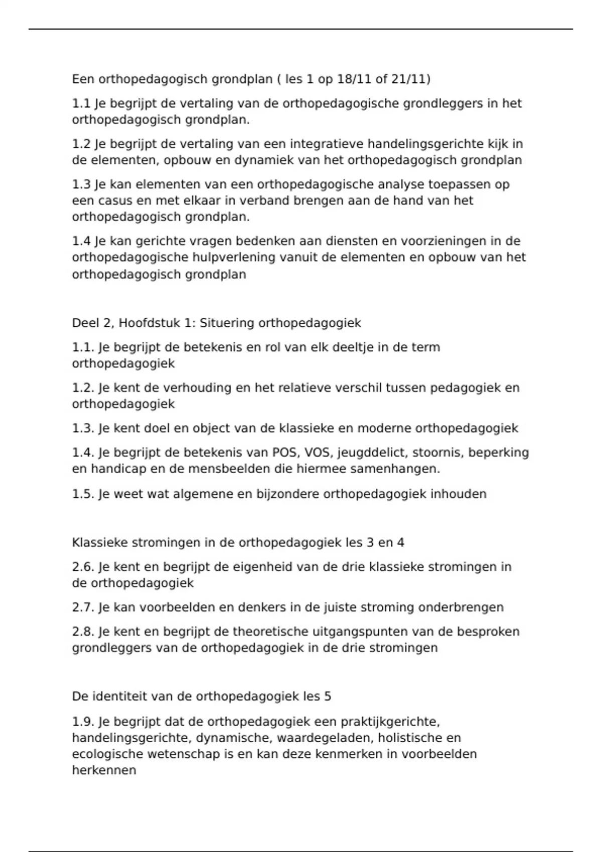 In dit document staan alle doelstellingen voor het examen orthopedagogiek in het 1ste jaar aan de KdG. De examenvragen worden opgesteld aan de hand van deze doelstellingen. Ken je de doelstellingen? Dan zal je het examen kunnen.