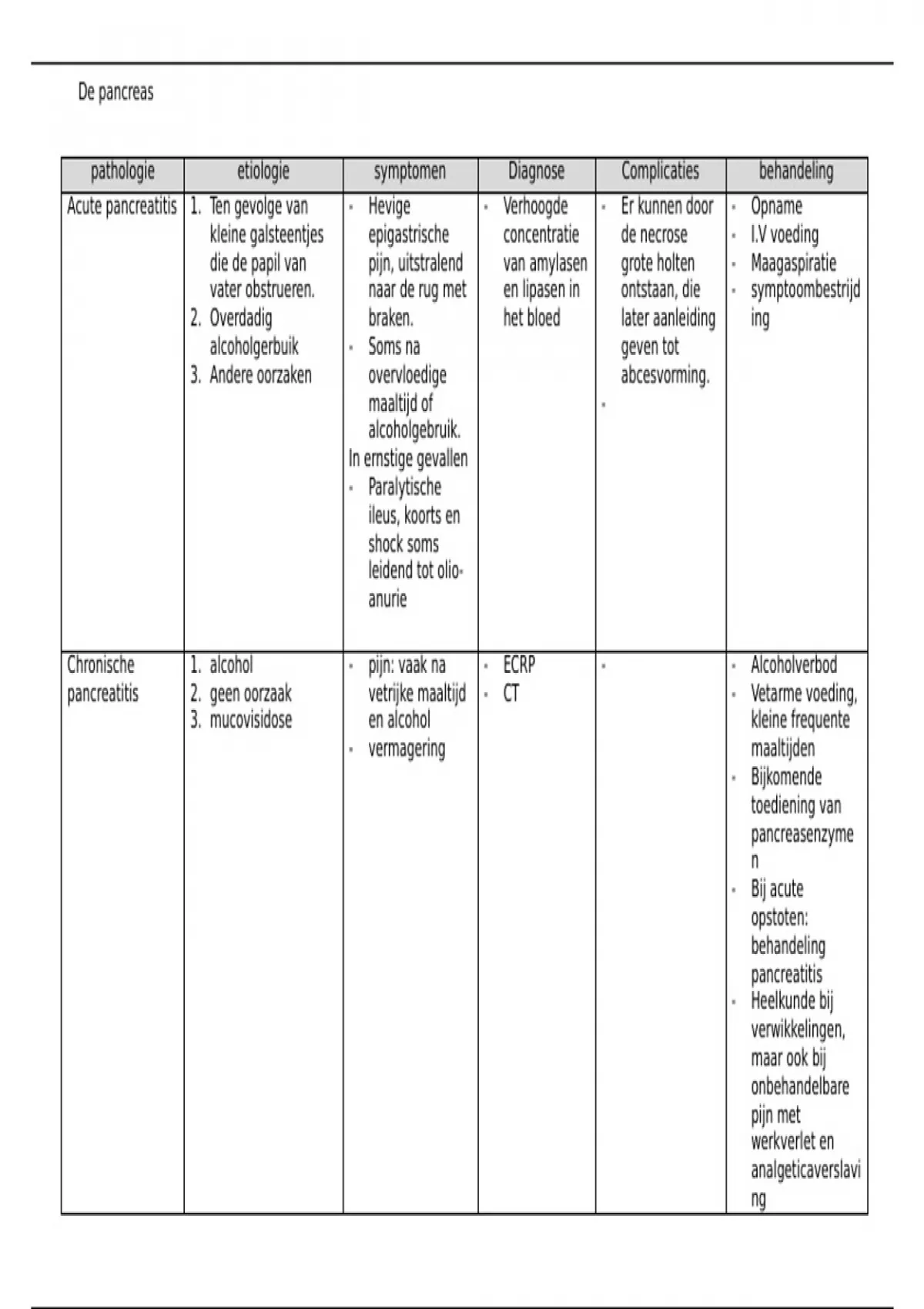 Samenvatting de pancreas