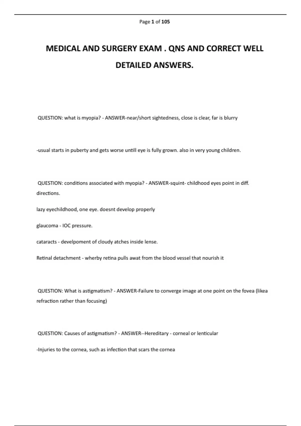 MEDICAL AND SURGERY EXAM . QNS AND CORRECT WELL